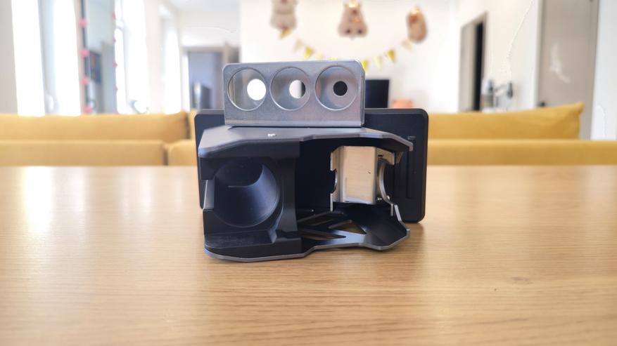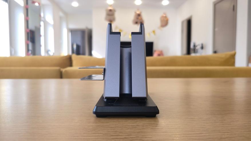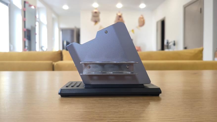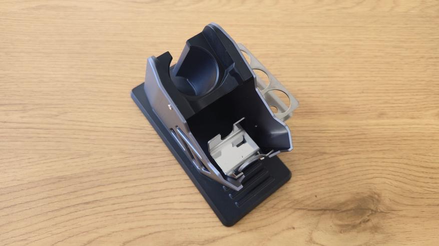 В основании базы предусмотрены резиновые ножки, которые исключают скольжение на поверхности стола. Дополнительно сделаны круглые посадочные гнезда для сменных насадок. Они совместимы со стандартными соплами от других моделей, поэтому можно использовать как фирменные, так и универсальные варианты. Дополнительно отмечу, что конструкцию встроены магниты, которые взаимодействуют с сенсором в ручке: когда фен возвращается на место, он автоматически переходит в режим ожидания или ускоренного охлаждения.