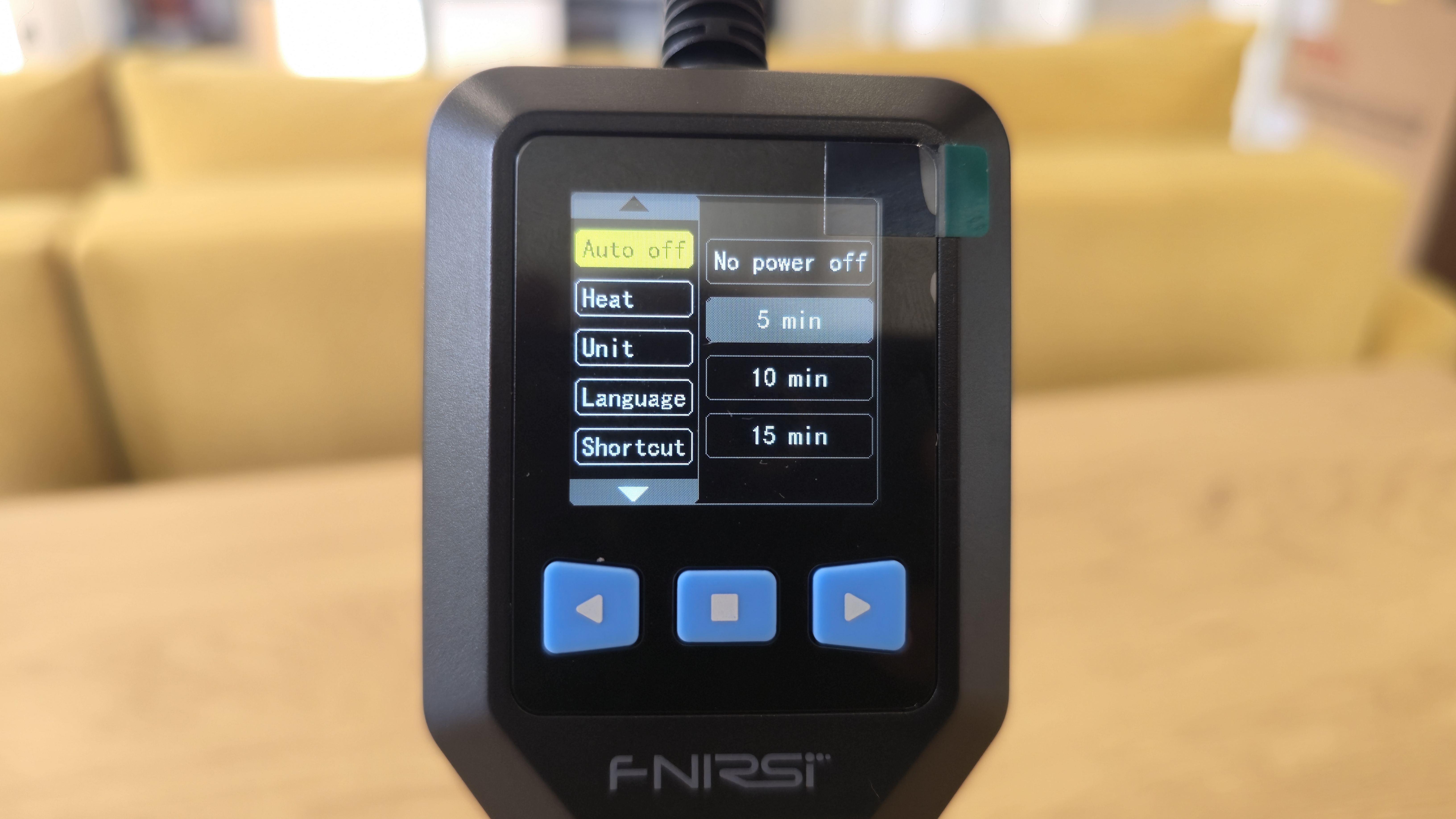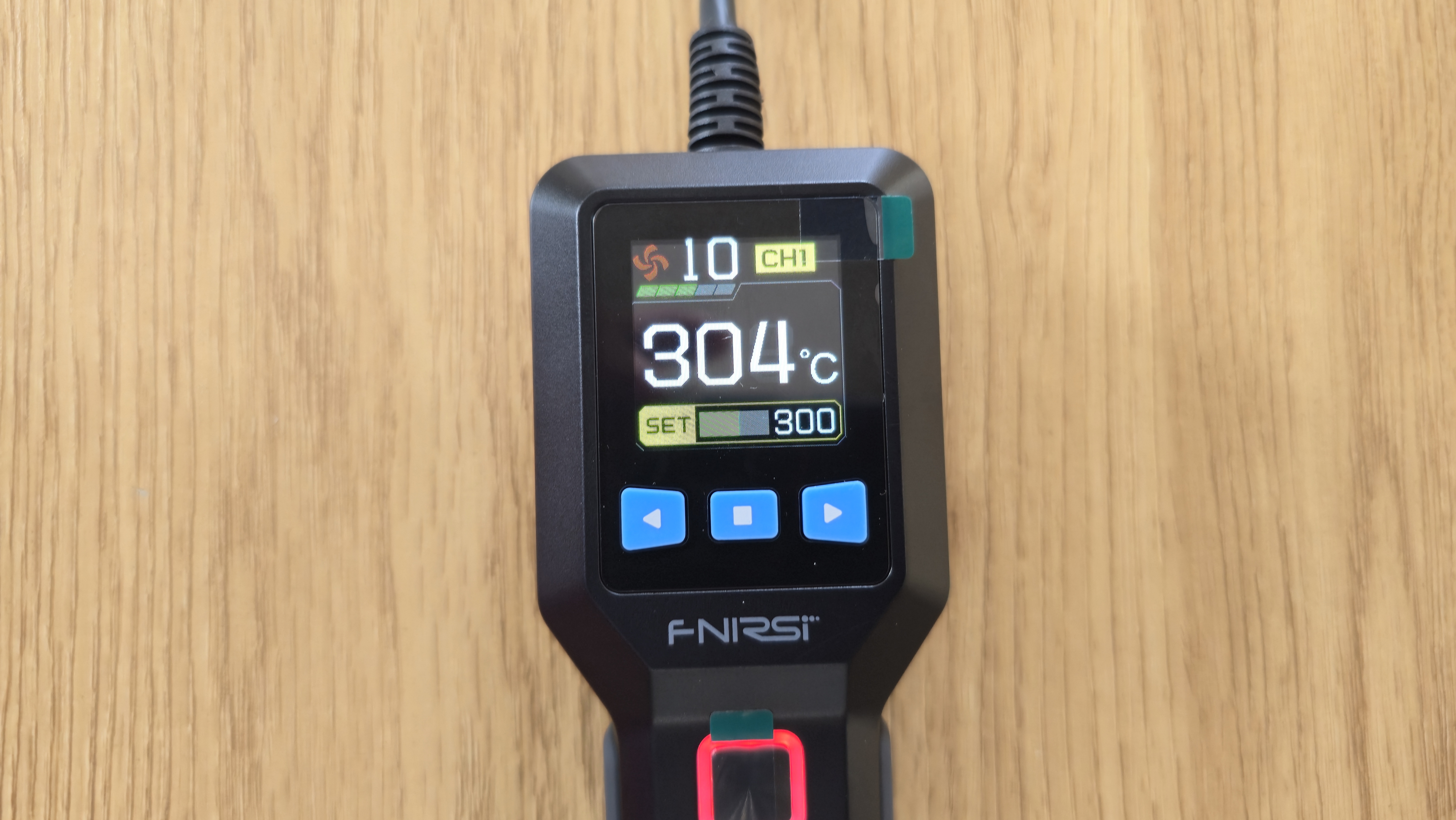 Первым делом я проверил, как быстро Fnirsi SAG-55 выходит на рабочий режим. После включения фен сразу подает воздух, а до максимальных 450 °C разогревается меньше чем за десять секунд.