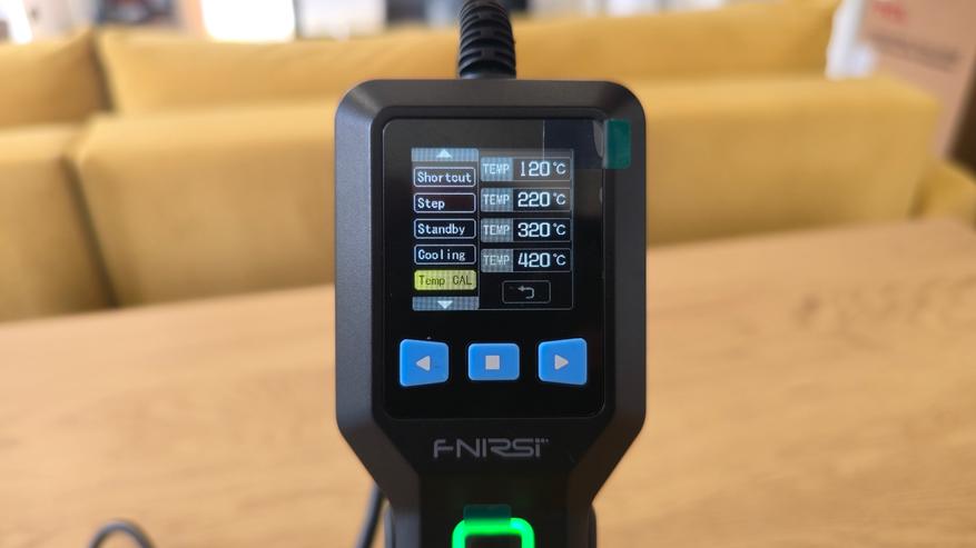 Система защиты включает таймер автоотключения на 5, 10 или 15 минут простоя. Для тех, кто работает рывками, это страховка от забывчивости: устройство не останется включенным на столе бесконтрольно. Тонкая настройка обеспечивается калибровкой температуры по четырем точкам, возможностью выбора единиц измерения (градусы Цельсия или Фаренгейта) и регулировкой шага изменения температуры от 5 до 25 градусов. Последний параметр полезен при грубой регулировке — быстрее выставить рабочий режим, а при мелкой — точнее подстроиться под конкретную задачу.