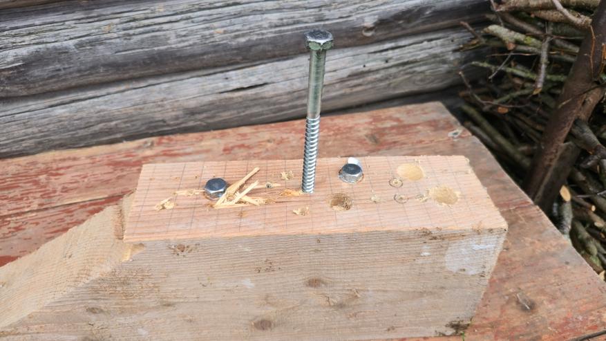 Собственно на этой веселой ноте я продолжил свое тестирование, используя инструмент по его прямому назначению. Аккумулятор я зарядил полностью и решил проверить, насколько его реально хватит, если работать без перерывов. Материал выбрал самый обычный — брус 100х200, глухари 200х10 мм. Просто ставлю головку, нажимаю курок и закручиваю один за другим, пока инструмент не остановится сам. И здесь я хочу напомнить, что я тестирую с комплектным высоко токовым аккумулятором на 4 аЧ.