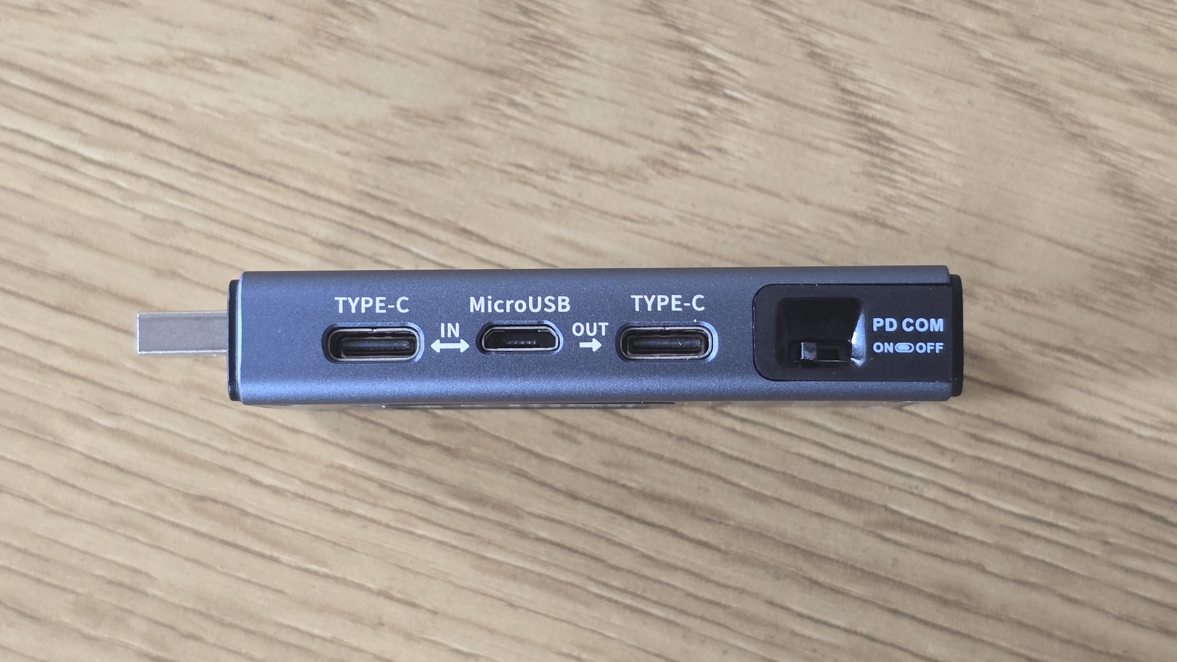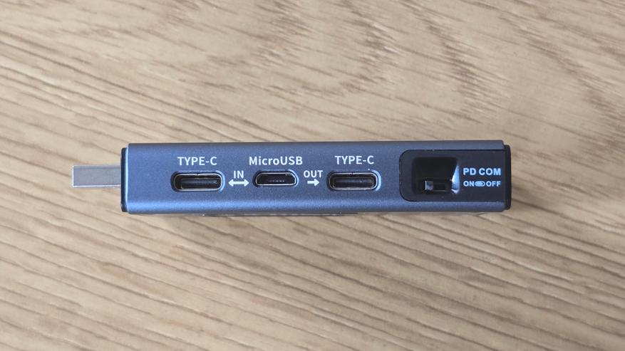 - Переключатель PD Communication, находится справа от портов и служит для управления режимом PD-коммуникации. Он позволяет включать и выключать поддержку протокола Power Delivery, что необходимо для тестирования соответствующих устройств.