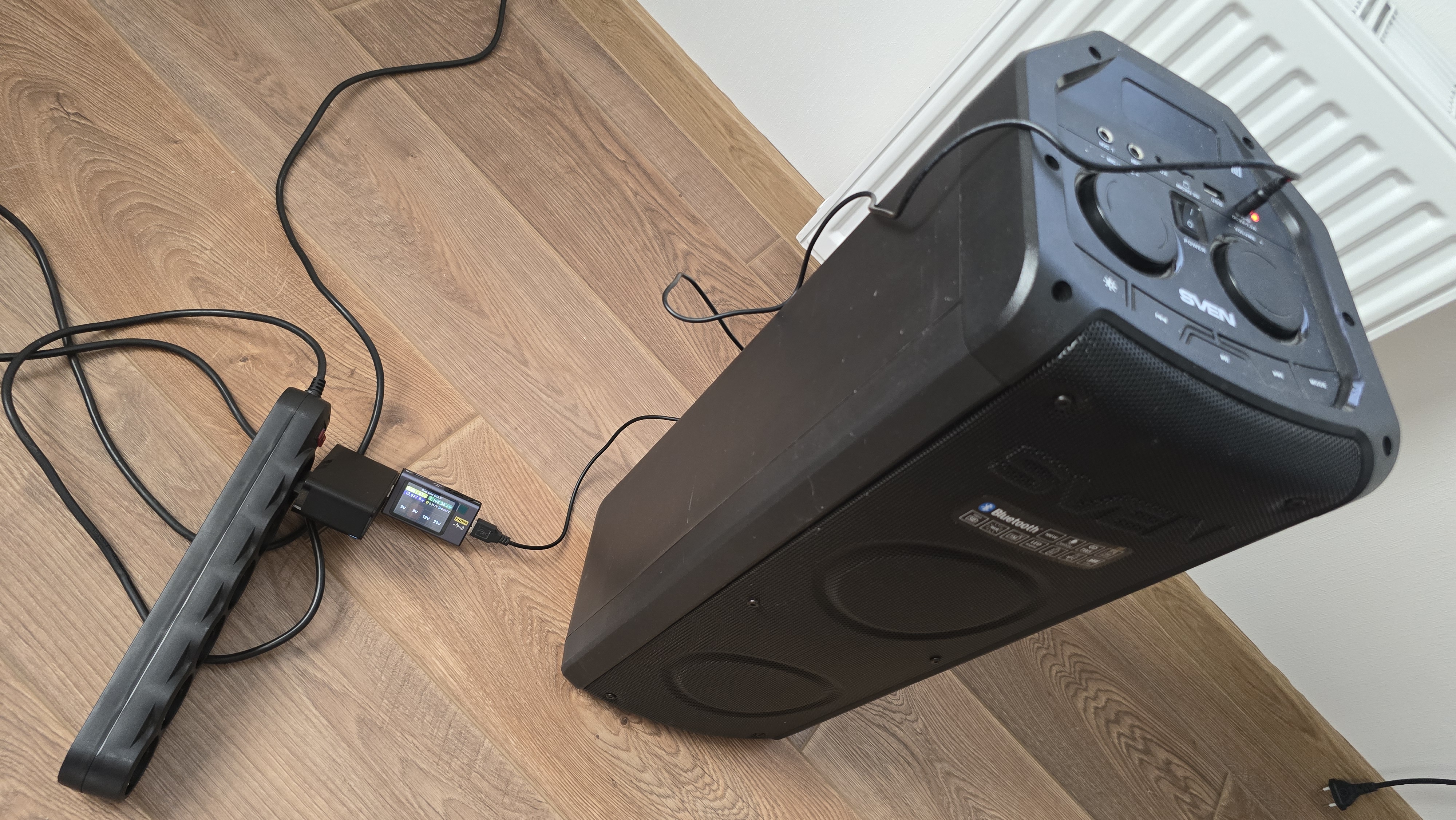 Для проверки работы триггера в USB-тестере FNIRSI FNB58 я использовал универсальное зарядное устройство мощностью 100 Вт и кабель для зарядки. Исходная проблема заключалась в том, что при прямом подключении колонки к зарядному устройству зарядка не начиналась — устройство не определяло подходящее напряжение для зарядки С помощью FNIRSI FNB58 я активировал режим триггера и установил напряжение на уровне 9 В, что соответствует заявленным характеристикам комплектного зарядного устройства для колонки. После настройки нужного напряжения зарядка сразу началась. Это показало, что устройство корректно определило необходимый режим работы, обеспечив подачу стабильного напряжения, что позволило начать зарядку. Такой подход позволяет обойти ограничения автоматического выбора режима зарядки и вручную настроить параметры для успешной работы устройства.