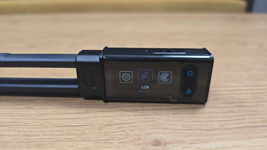 На левом торце находится порт USB-A, через который подключаются быстросъемные модули. Именно сюда устанавливается измерительный блок пинцета или альтернативные модули, например Kelvin-клещи. Такое решение делает конструкцию модульной и позволяет менять тип интерфейса без разборки корпуса.