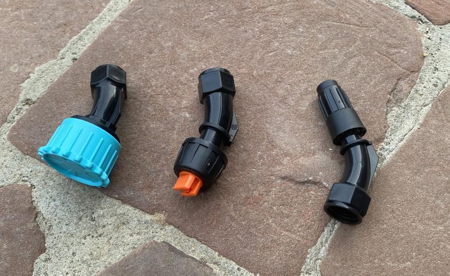 Также отмечу, что все соединения опрыскивателя имеют либо уже установленные резиновые прокладки, либо нужно использовать те, которые приложены отдельно. Все плотно соединяется и ничего нигде не люфтит. Вообще, я даже удивился хорошему качеству изготовления за те небольшие деньги, которые он стоит.