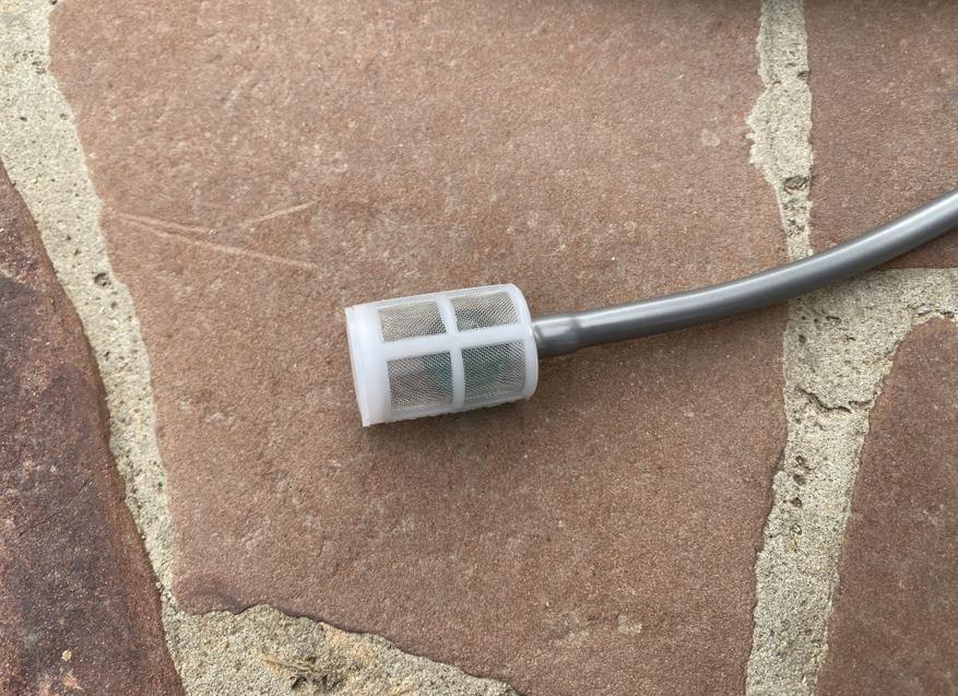 Для того, чтобы шланг был постоянно погружен в емкость и не выскакивал, предусмотрен фильтр со стеклянным шариком в качестве грузика, устанавливаемый на погружаемый конец шланга.