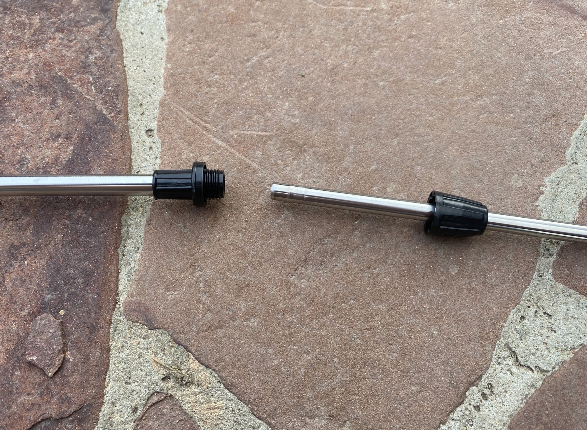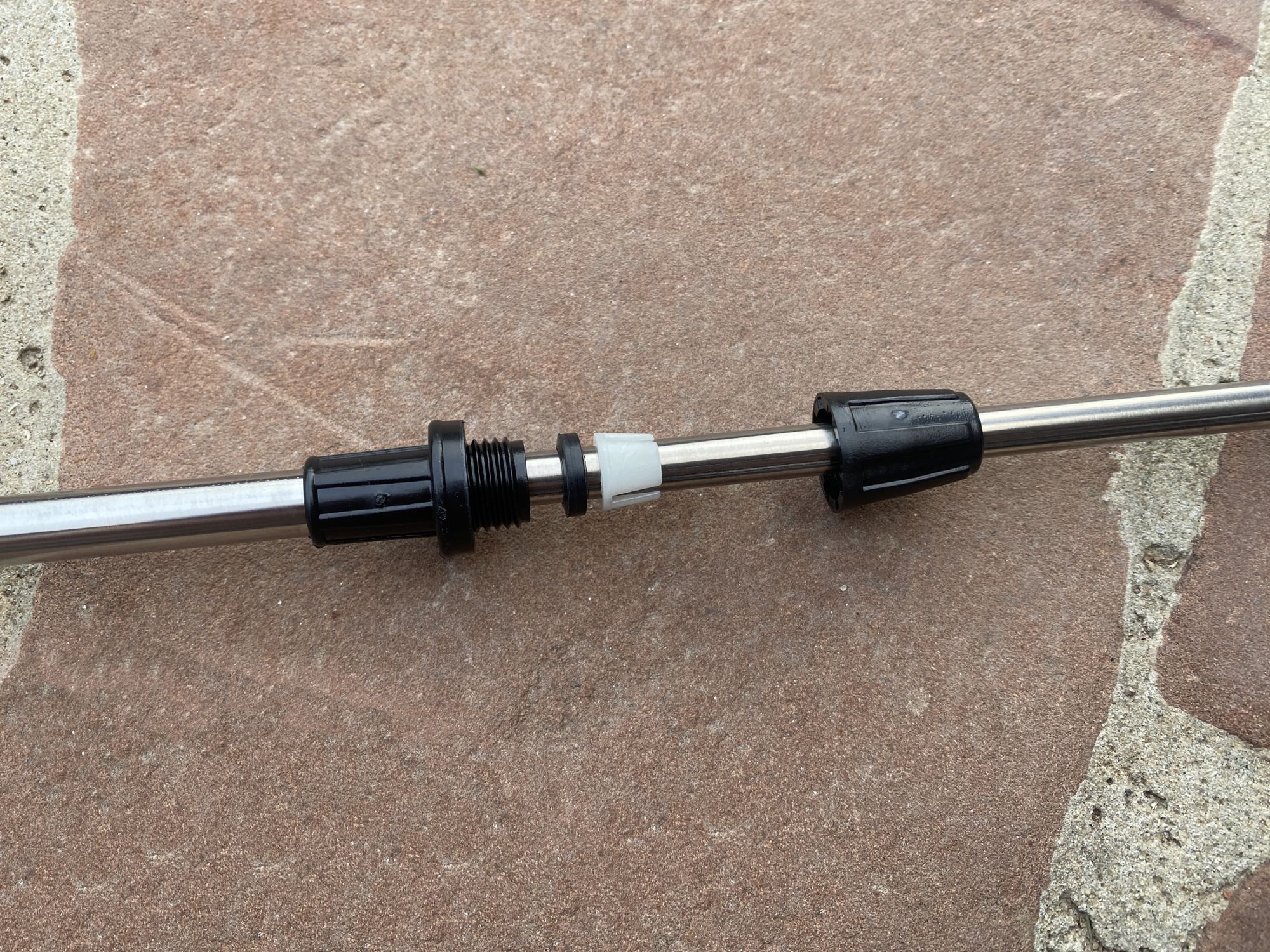 Штанга состоит из двух свинчивающихся трубок, длина каждой около 55см, поэтому длина штанги может варьироваться в диапазоне 60-110см.