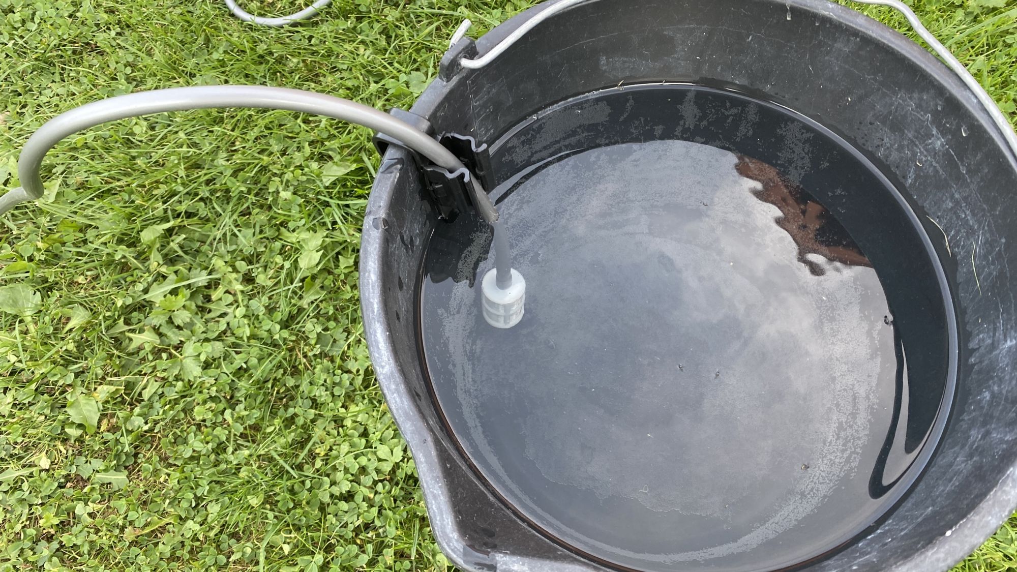 Конец шланга помещаем в ведро и фиксируем его с помощью клипсы, которая цепляется за край емкости.