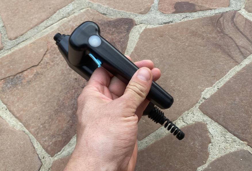 Опрыскиватель представляет из себя П-образную рукоятку достаточно компактного размера, в которой находятся все рабочие элементы устройства: насос, электроника и встроенная Li-Ion батарея.