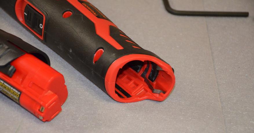 Внутри «мозги» инструмента: плата с силовым управлением, одновременно с защитой и контролем батареи. Она же содержит в себе индикатор уровня заряда аккумуляторов.