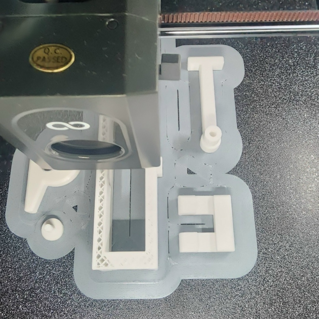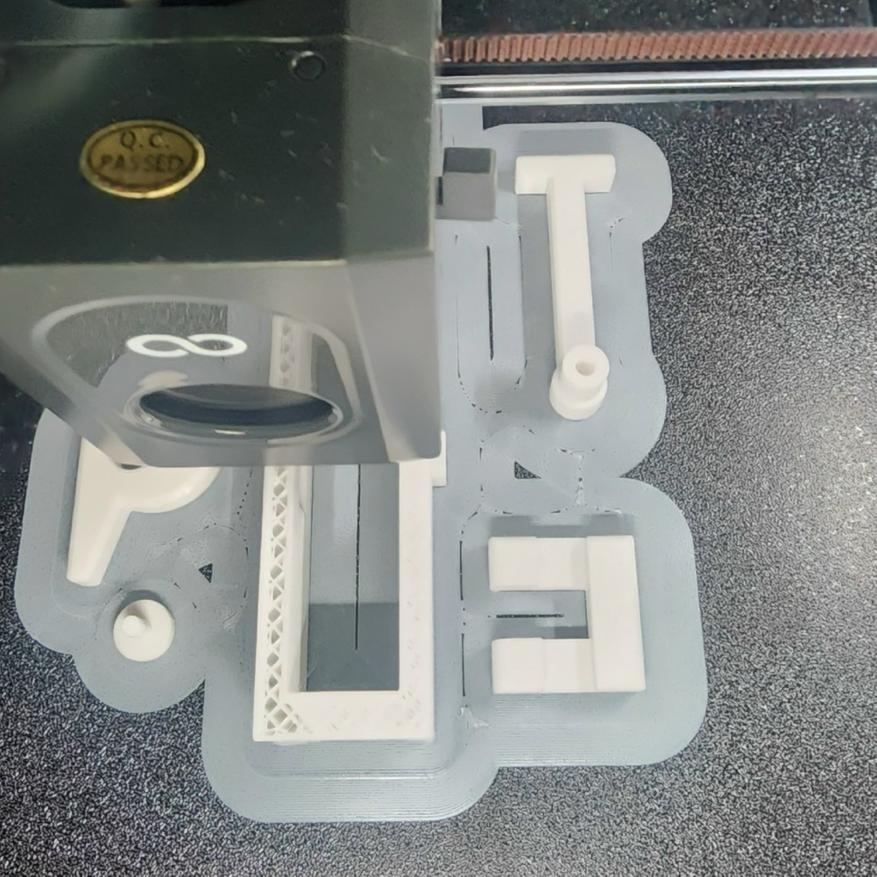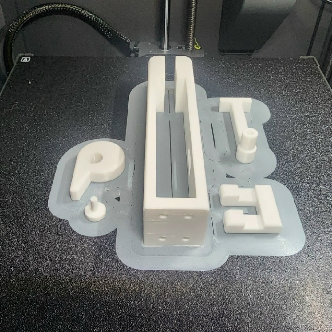 Основной целью применения гратоснимателя является удаление «грата» — технологических остаточных элементов и дефектов, неизбежно возникающих в процессе FDM/FFF-печати. Также его можно использовать для отделения модели от опорных структур-поддержек, удалять «юбки» или «кайму», которые служат для обеспечения адгезии изделия к платформе построения. На фотографиях ниже как раз пример такой каймы по периметру деталей — это позволяет удерживаться пластику на рабочей поверхности, несмотря на высокие скорости печати. Печатаю на 3D принтере Centauri Carbon от Elegoo, про который можете посмотреть подробно в моём профиле или, например, в этом обзоре с примерами настройки слайсера, общими советами и примерами печати.
