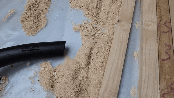 Анимация с примером уборки рабочего места. Опилок при сборке мебельных щитов из ламелей получается много. А при склейке щитов требуется чистота и порядок. Так что перед ответственной операцией стараюсь все пропылесосить и убрать лишнее.
