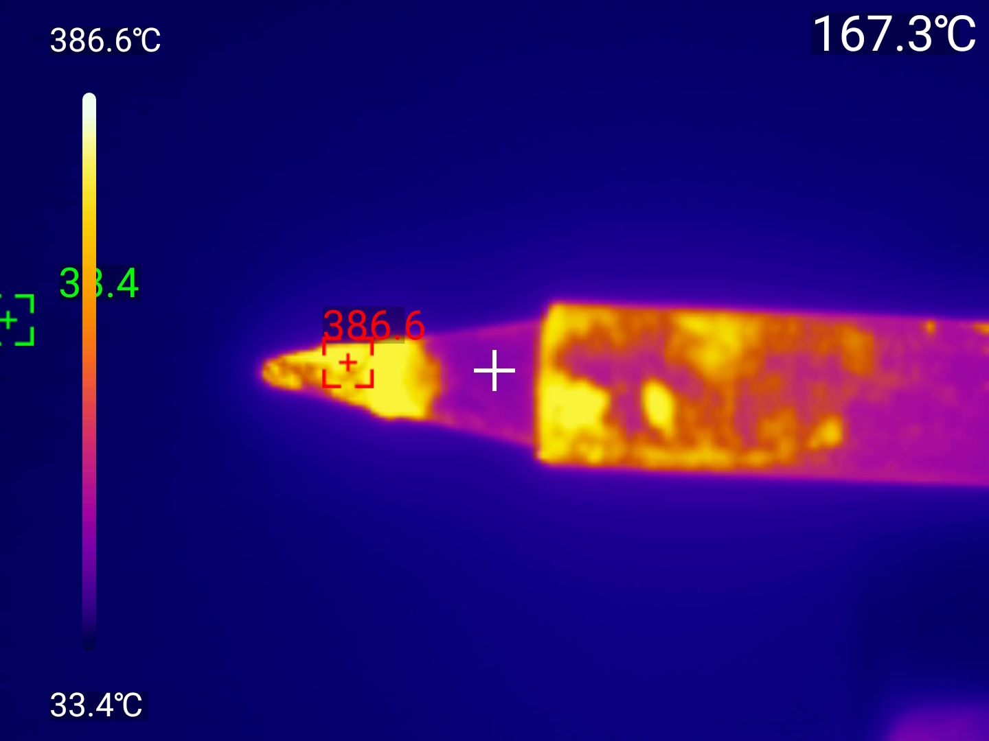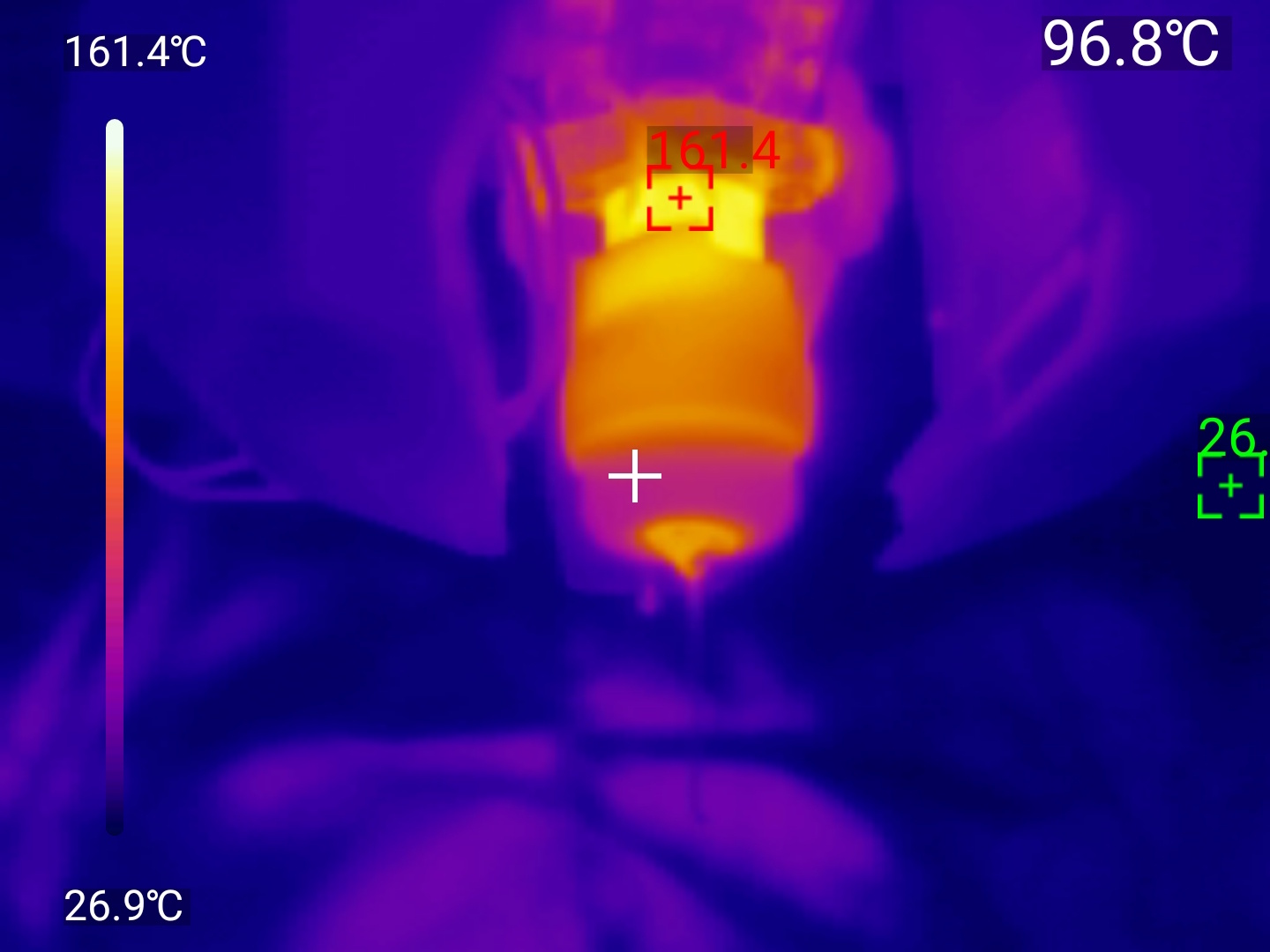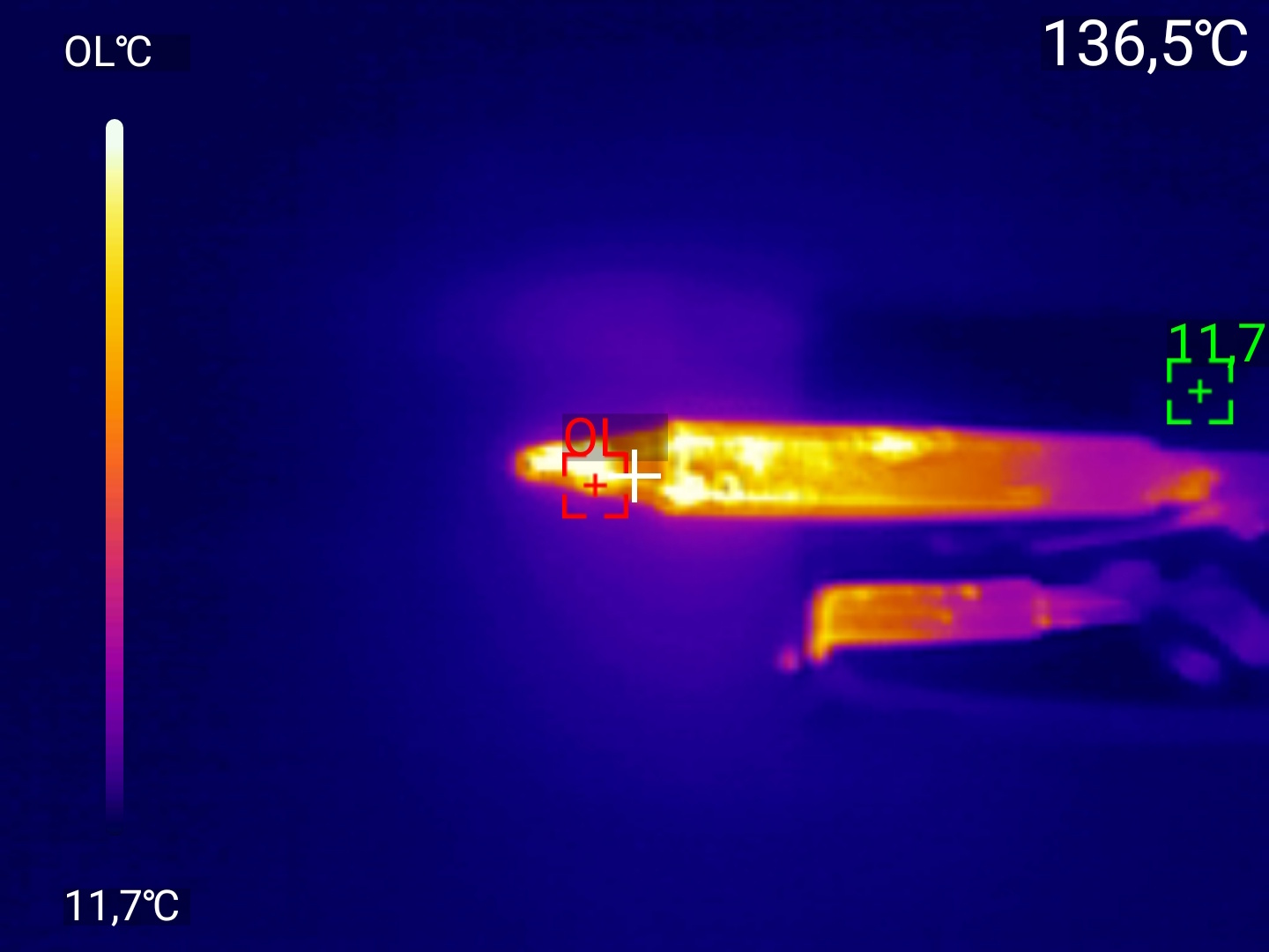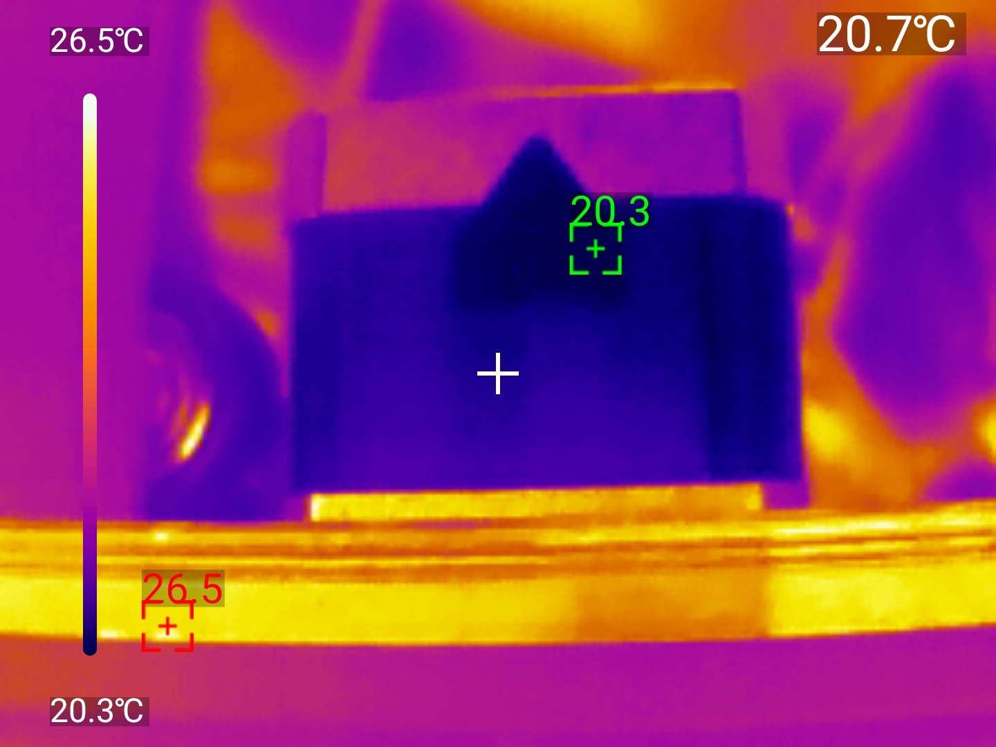 Точечные измерения: Приложение позволяет установить до трёх измерительных точек на изображении. Для каждой точки отображается текущая, максимальная и минимальная температура. Критические значения выделяются цветовыми маркерами — удобно для быстрой оценки ситуации.