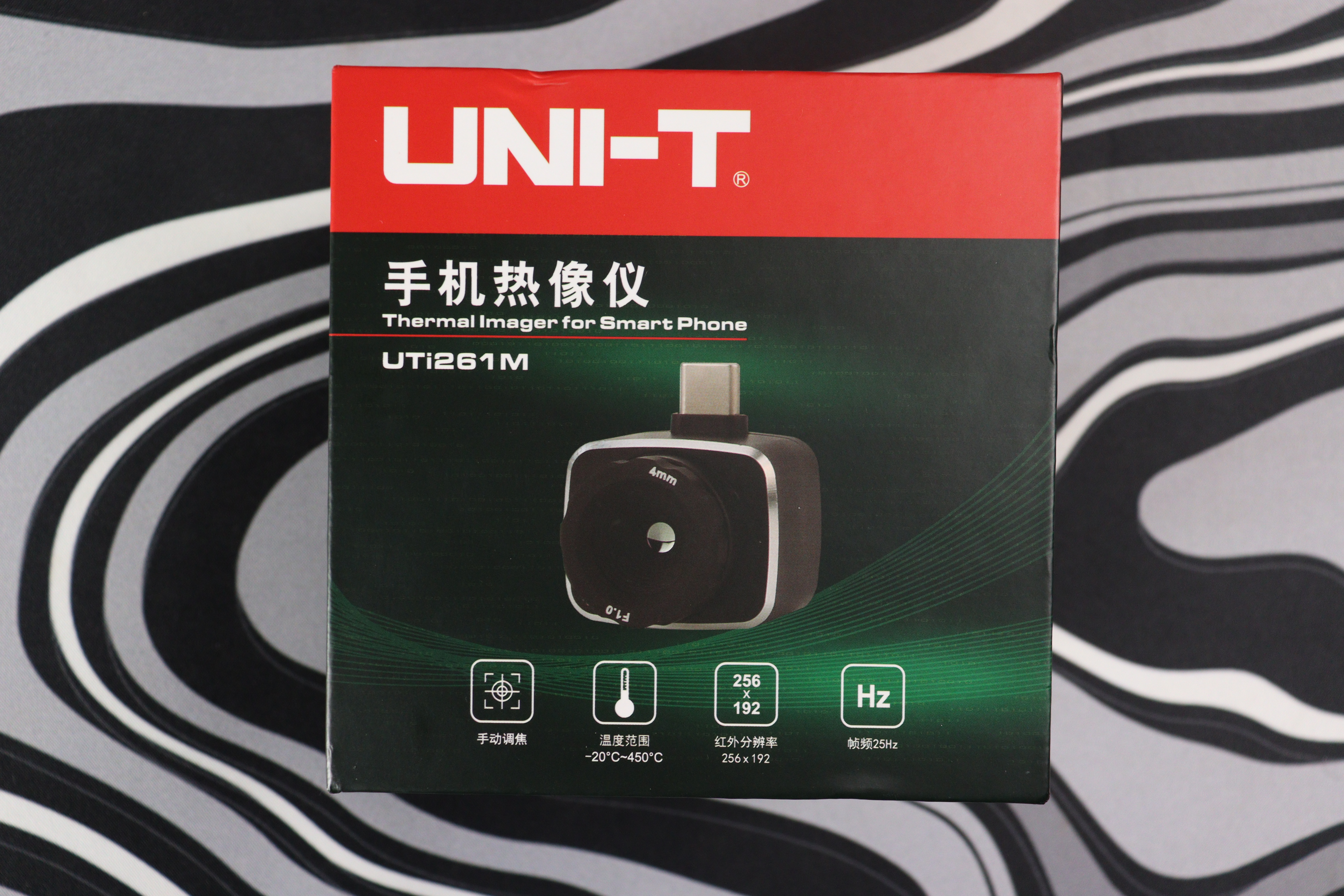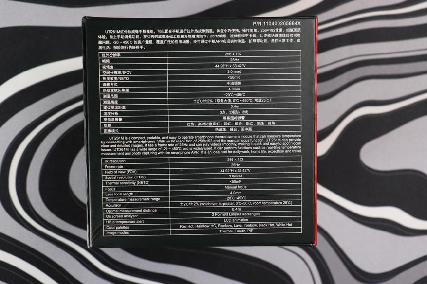 Упаковка UTI261M сразу выделяется габаритами — коробка почти вдвое выше, чем у младших моделей линейки. Производитель использовал плотный картон с качественной полиграфией, на лицевой стороне указаны ключевые характеристики устройства и фотографии модуля. Увеличенные размеры упаковки обусловлены более массивной конструкцией самого тепловизора — механизм фокусировки требует дополнительного места.