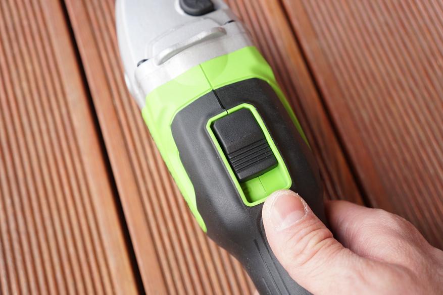 На «спинке» инструмента установлена большая фиксируемая кнопка запуска вращения диска.