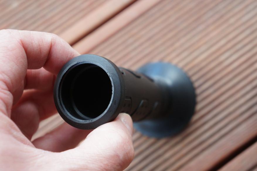 … и распилить пластиковую трубу (потом правда нужно чистить кожух и диск от остатков пластиковой стружки).