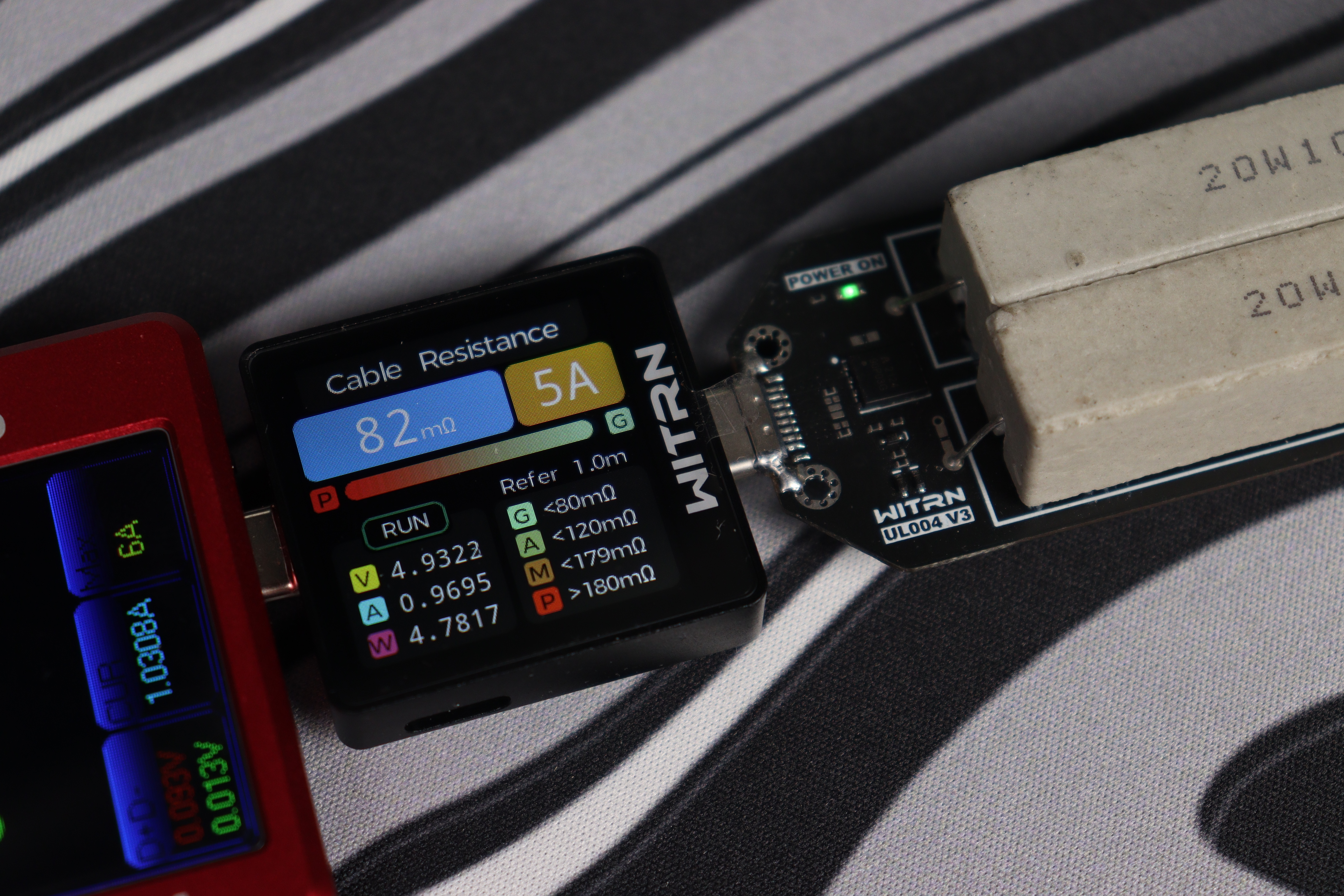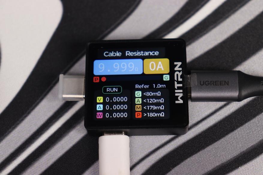 Кроме того, в этом разделе реализована функция измерения внутреннего сопротивления кабеля. Измерения помогают определить, насколько сильно кабель влияет на эффективность зарядки и где теряется мощность. Для использования данного тестера необходимо использовать дополнительный модуль, например WITRN UL004
