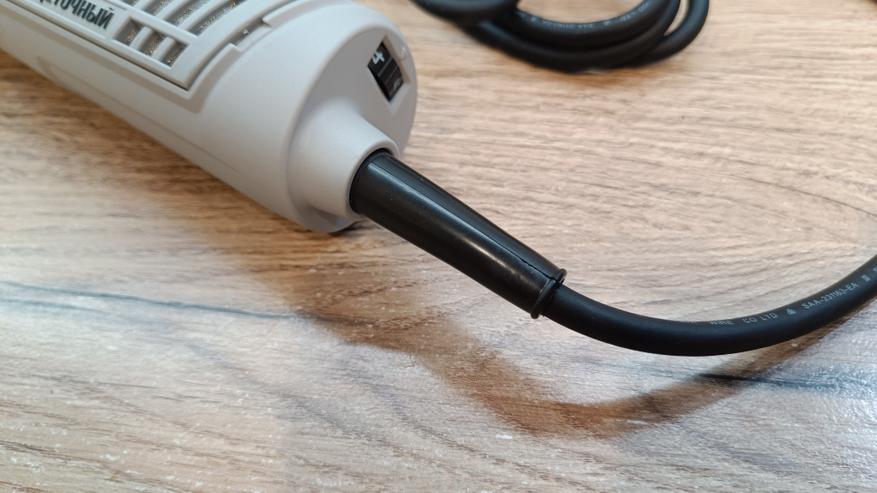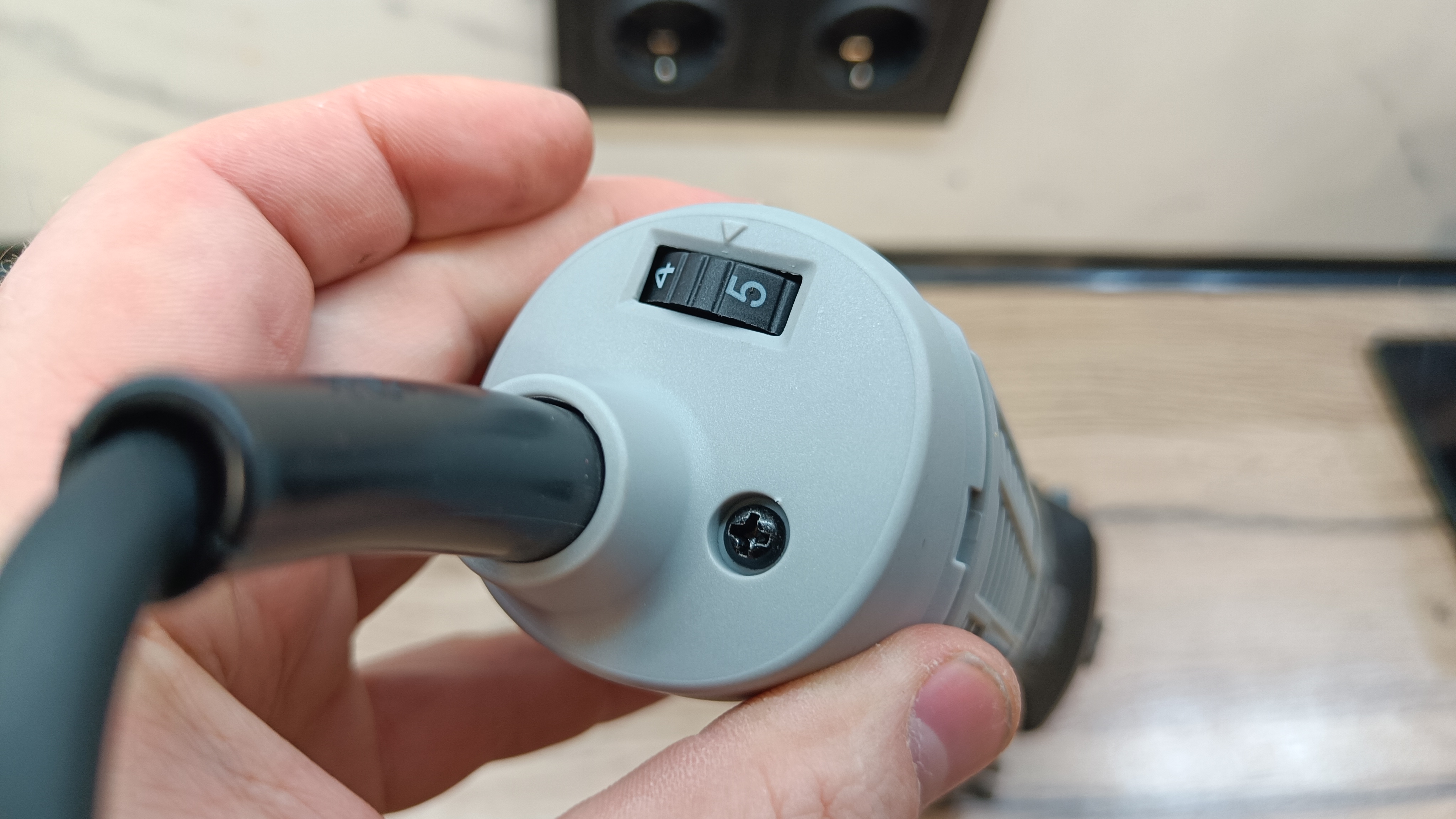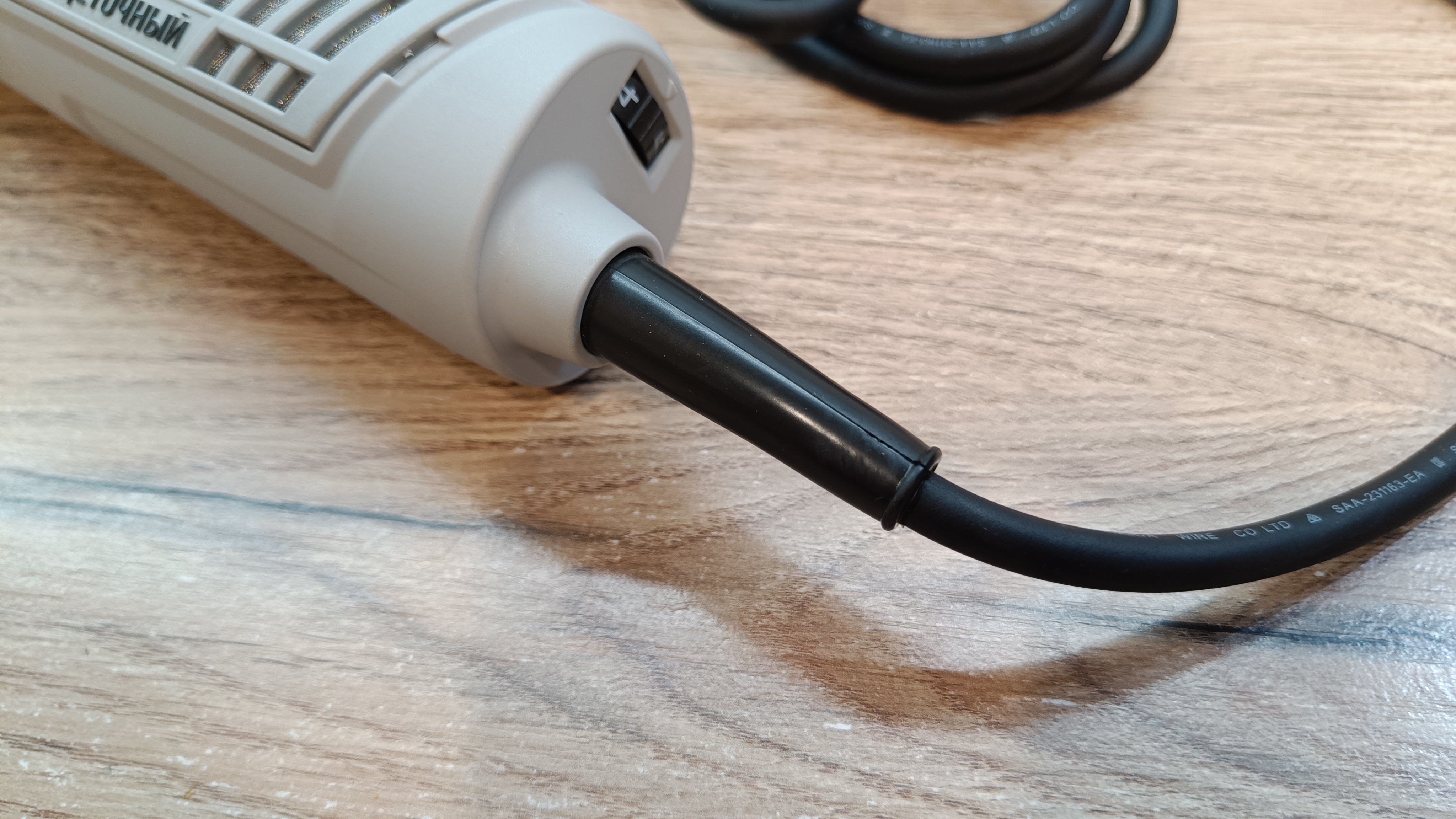 Перейдем к тестам в условиях гаража. В помещении — 8 градусов, а кабель питания остается мягким, особенно если сравнивать с пластиковой изоляцией другого инструмента.