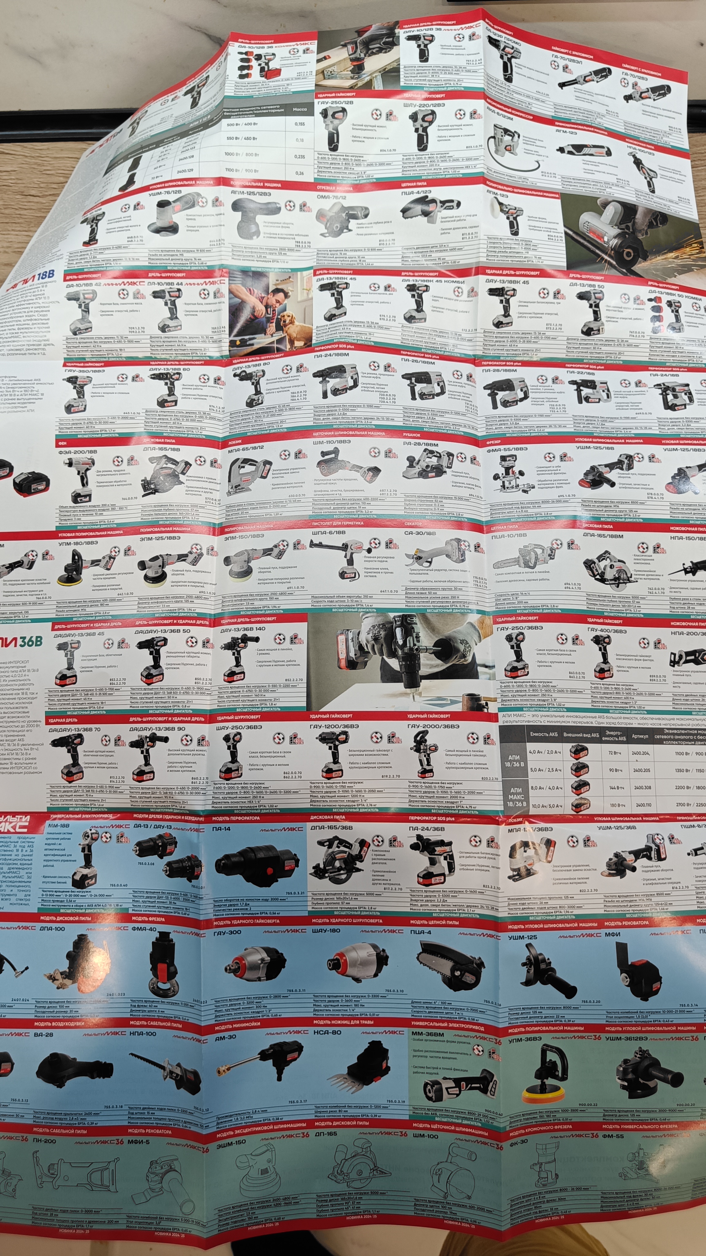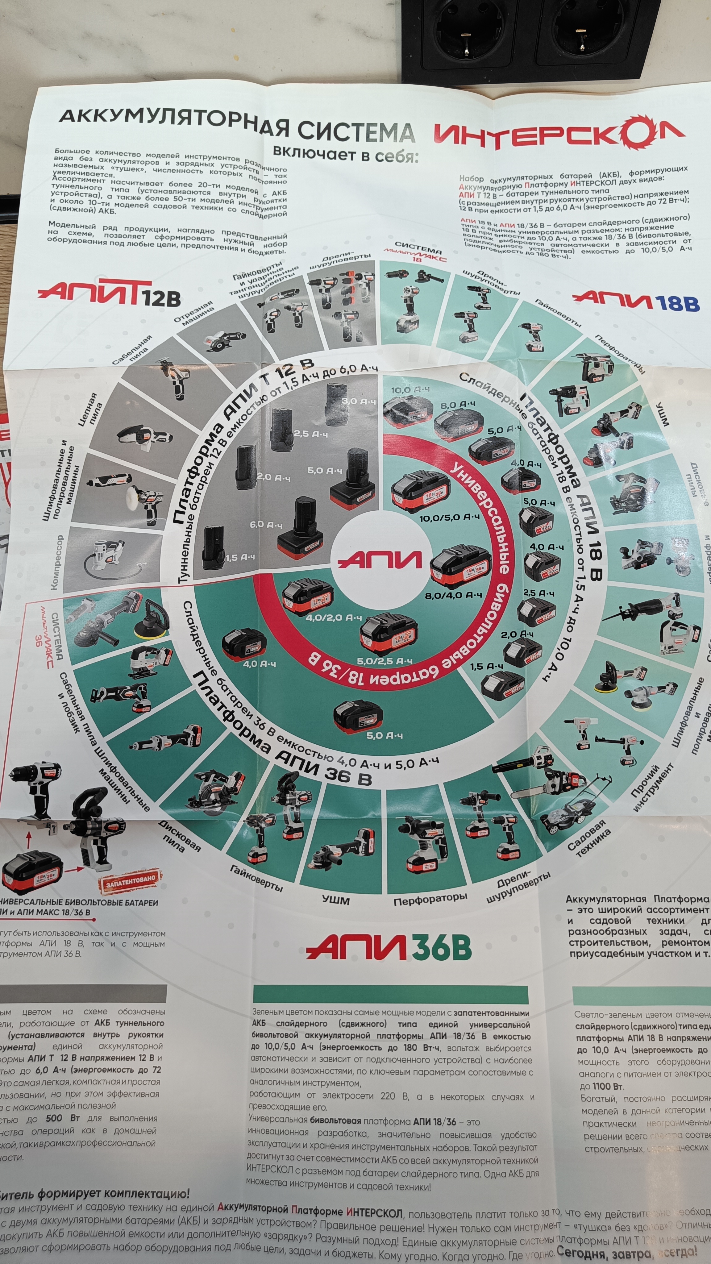 Есть большой плакат со всеми видами выпускаемого электроинструмента и совместимостью по аккумуляторам. Это позволит подобрать необходимую оснастку под несколько аккумуляторов, сохранив семейный бюджет.