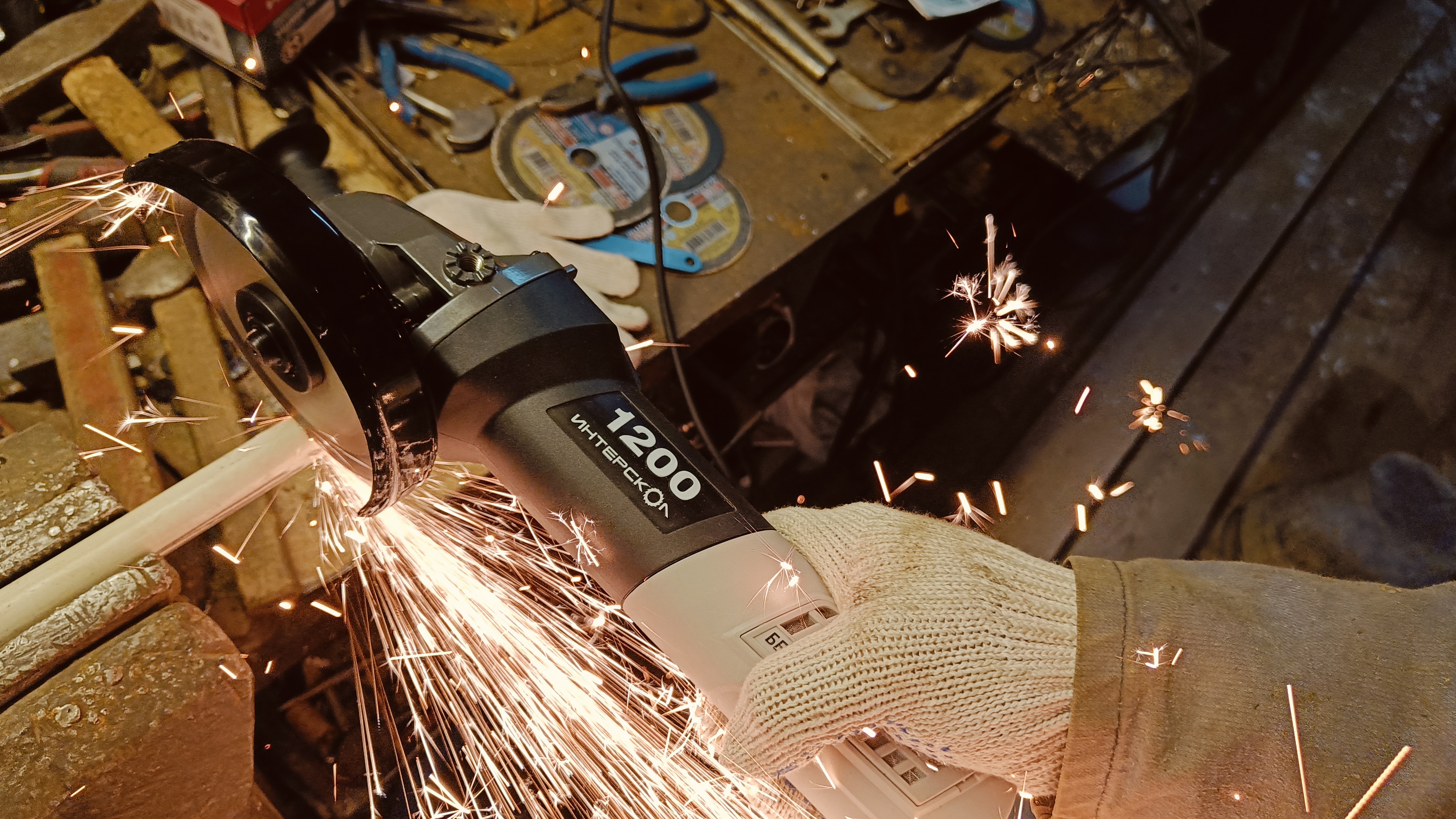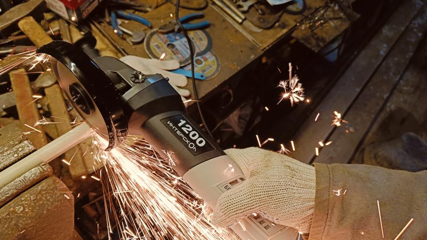 УШМ Интерскол УШМВ-125/1200Э в работе.
