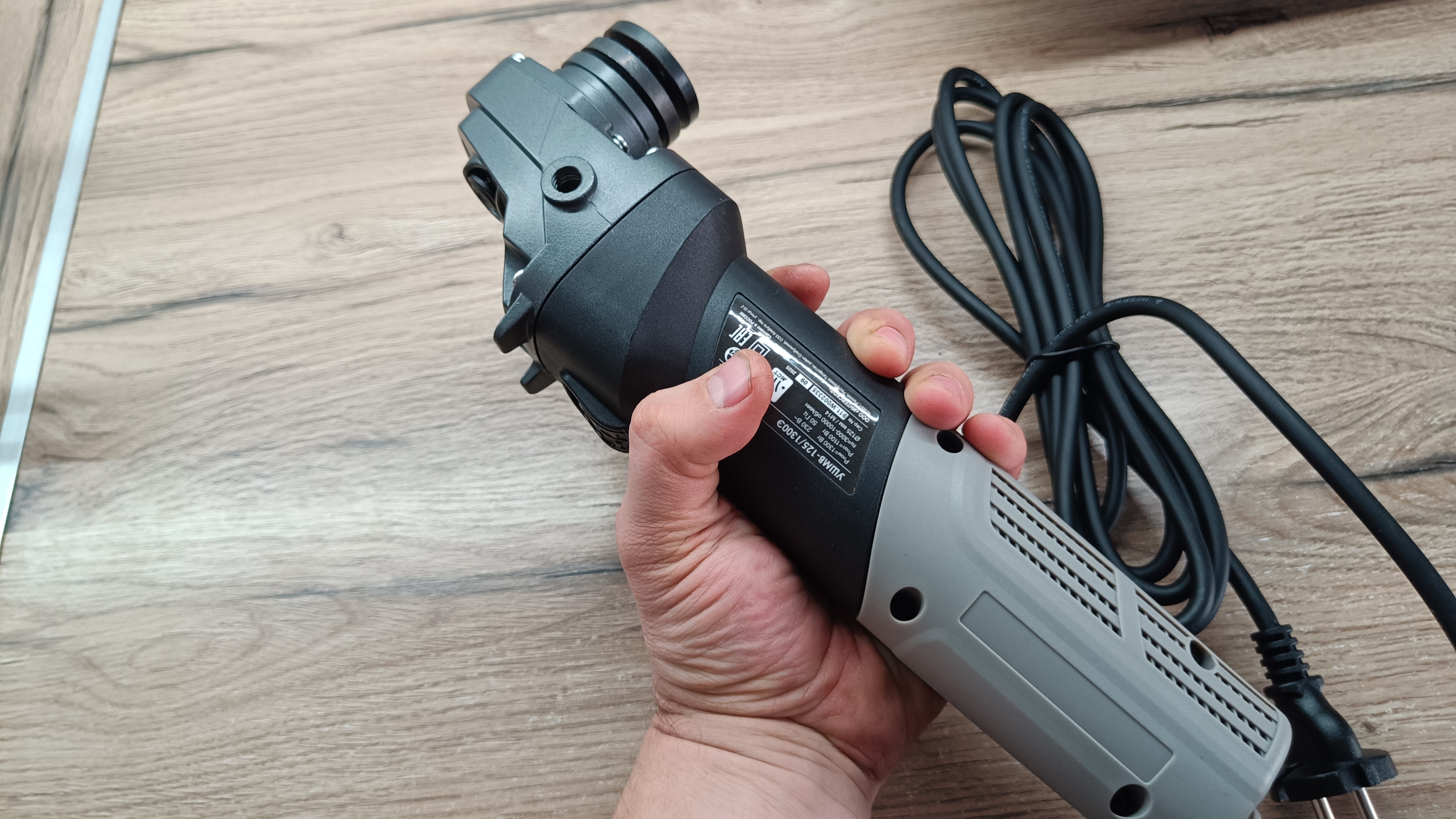 Оказывается, у производителя представлены данные УШМВ в 4 мощностях: 1100, 1200, 1300 и 1700. При этом отличаются еще и весом. Думаю, что при длительной и каждодневной эксплуатации разницы между 1100-1300 можно и не почувствовать. Лишь вариант УШМВ-125/1700Э существенно выделяется по мощности. Для бытового использования моделей 1200-1300 более чем достаточно. Мощности хватает, плавный запуск упрощает работу и не вырывает инструмент из рук. Провод с резиновой изоляцией, а значит, можно работать на улице или в холодном гараже и не бояться, что он лопнет. Понравилась возможность выбора скорости вращения шпинделя в нескольких положениях. Есть необходимая защита от перегрузки и поддержания заданных оборотов при работе под нагрузкой. Также, в инструменте реализована защита от случайного включения инструмента, которая крайне редко встречается в инструменте из данного ценового диапазона.