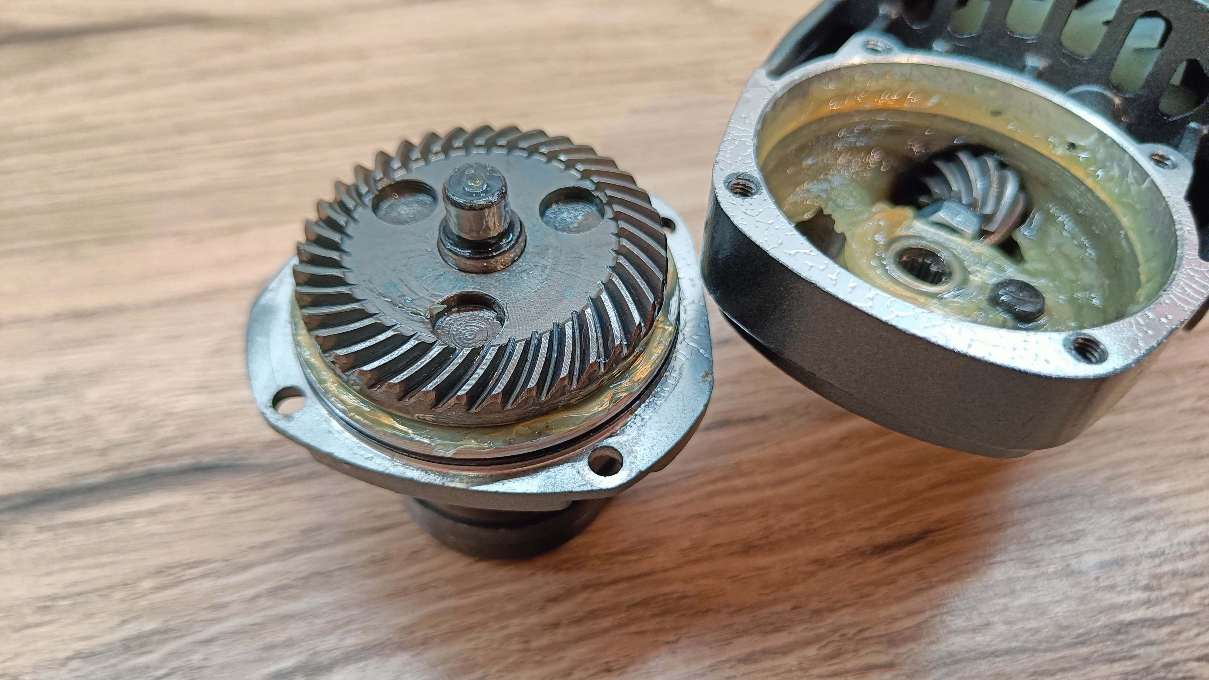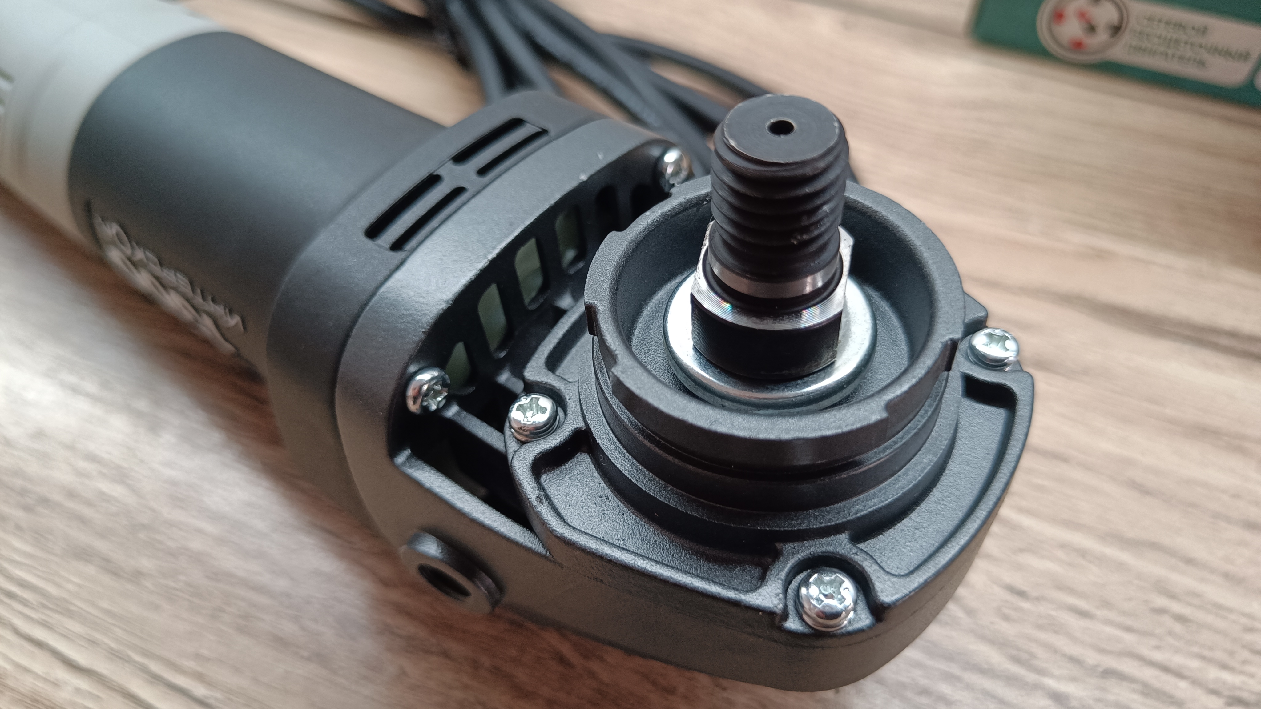Редуктор в металлическом корпусе. Шпиндель с резьбой М14. Редуктор можно развернуть в одно из 4 положений. Внутри корпуса достаточно смазки, а в дальнейшем ее можно будет добавить.