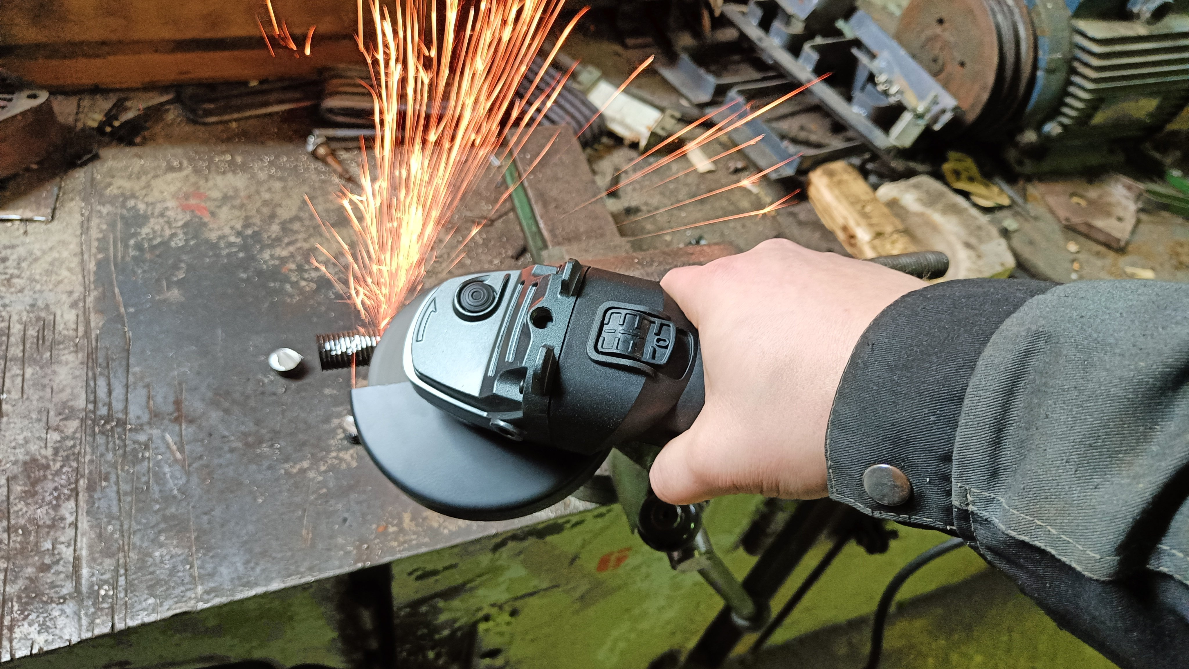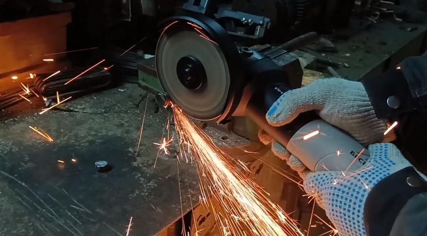 Запуск плавный, из рук не вырывает, а диск достаточно быстро набирает скорость. Уровень шума значительно ниже, так как нет щеточного механизма и шумит только сам редуктор. При распиливании толстых металлов нет провала по мощности. К примеру, с толстостенным металлом, таким как 32 труба, болгарка расправляется за менее чем 20 секунд на средней скорости, а если выставить уровень 6, то еще быстрее.