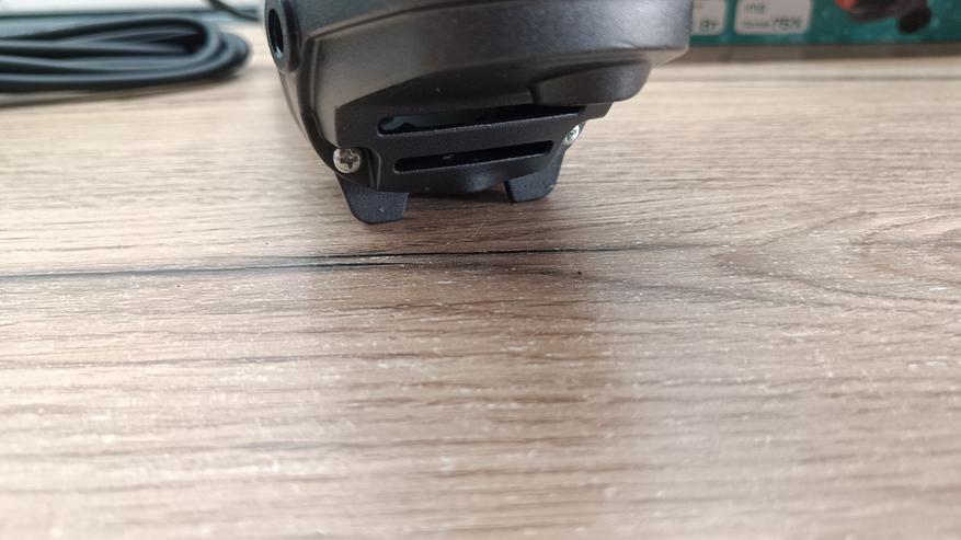 Редуктор металлический с окрашиванием в черный цвет. Для удобного хранения УШМ предусмотрены 2 выделяющиеся ножки. Таким образом, диск будет всегда в вертикальном положении, а корпус не касается поверхности стола.