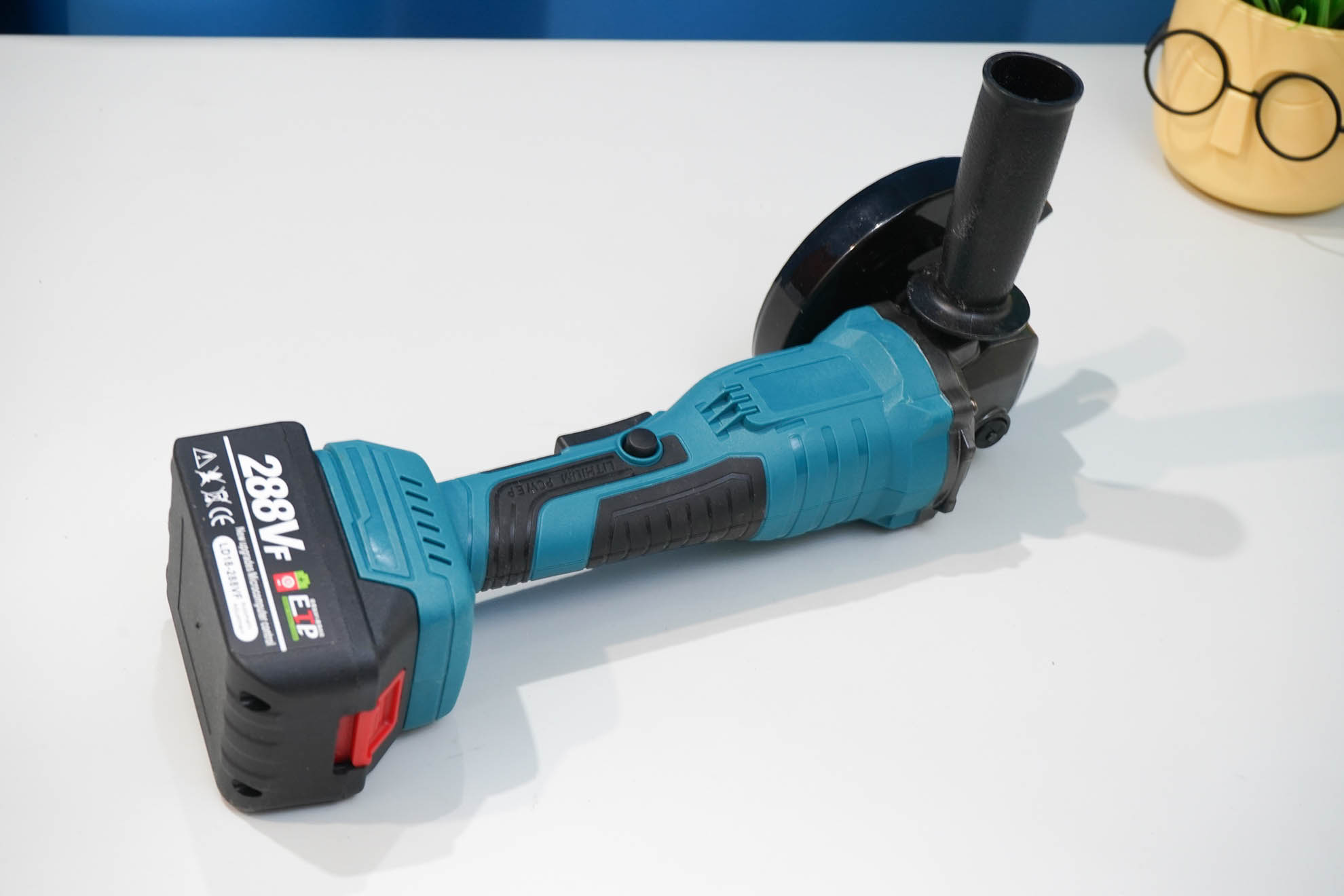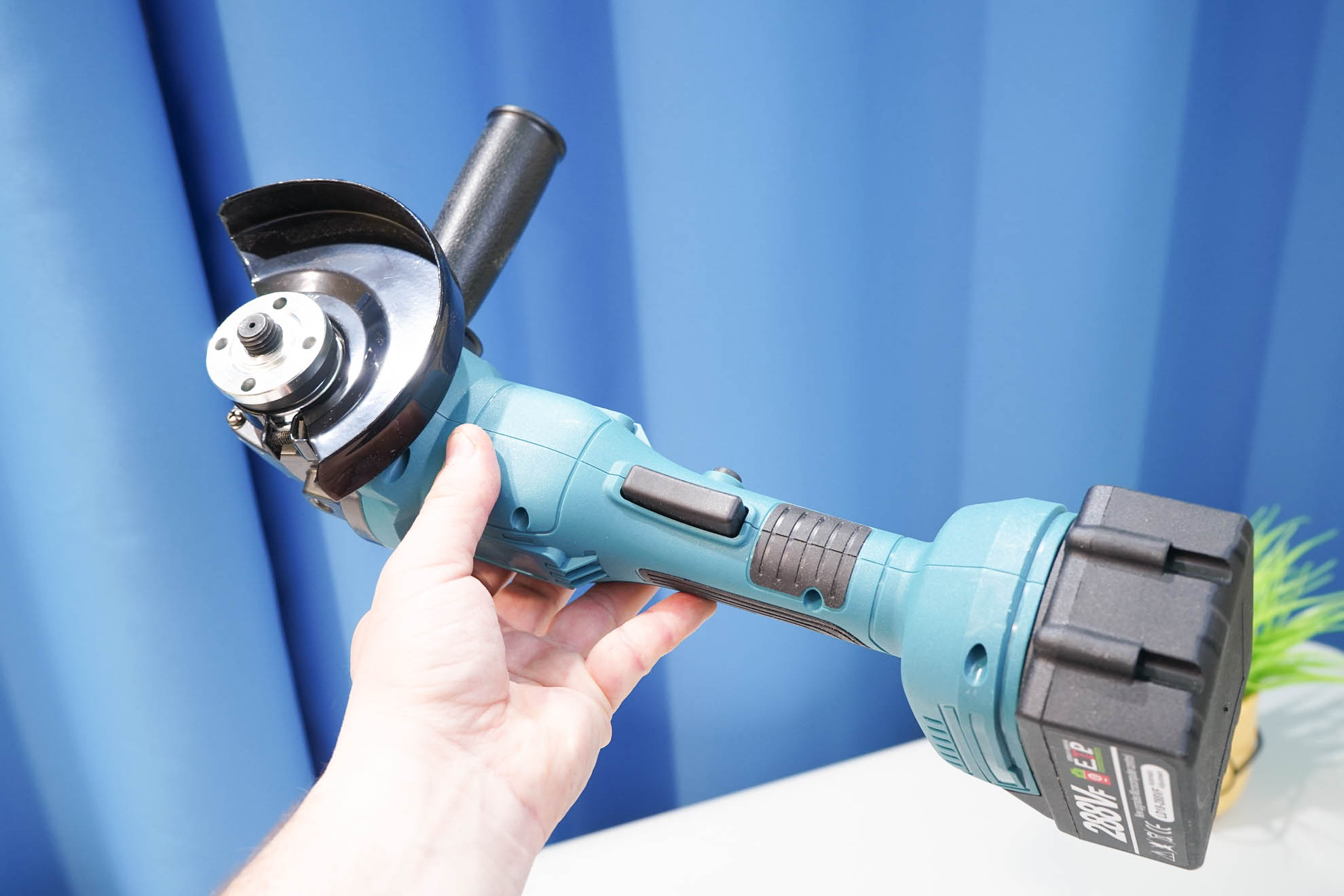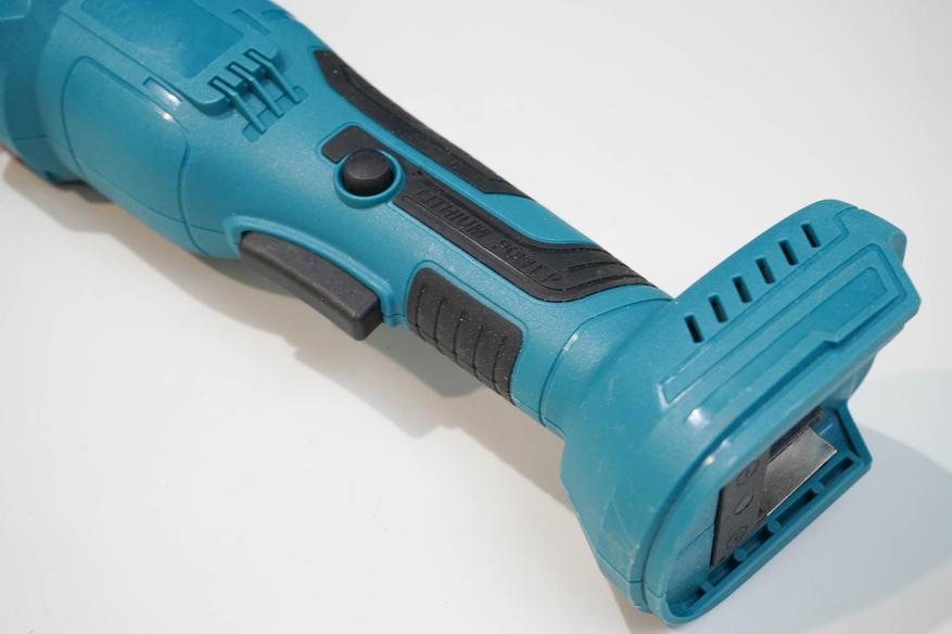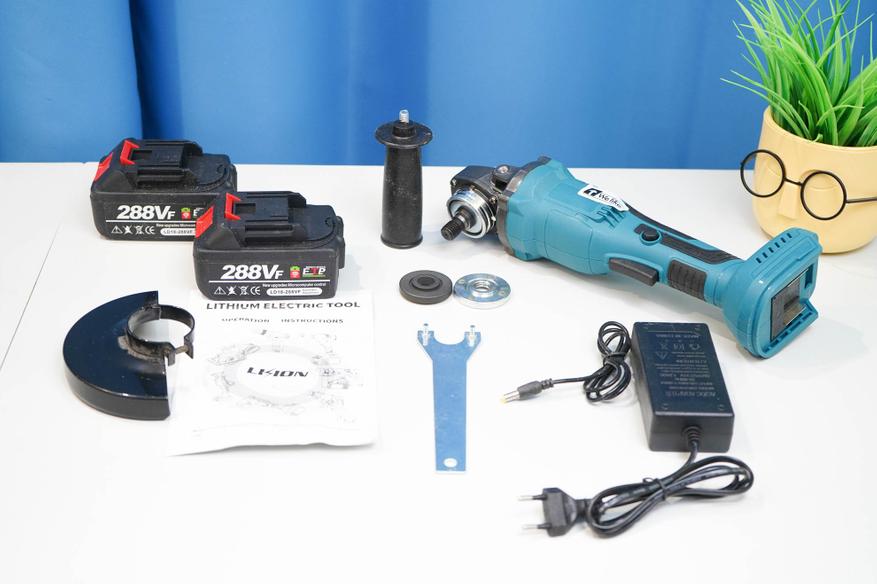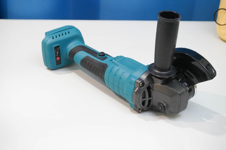 У меня набор в картонной коробке, с двумя батареями и зарядным устройством. По опыту скажу, батареи такого качества, да и маломощная зарядка будут лишними, так как только утяжеляют доставку и удорожают сам инструмент. Проще взять «тушку» и приобрести качественные батареи отдельно. Что же касается самой УШМ, то взял её исключительно из-за наличия кнопки куркового (клавишного/педального) типа. Такой тип инструмента на английском называется paddle-type. Он не заменяет классический инструмент, а, скорее, дополняет модельный ряд. Не всем такой инструмент будет удобнее, так как у него имеются не только свои плюсы, но и определенные минусы.