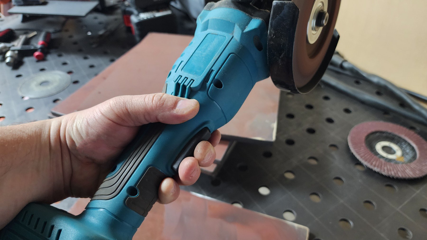 Подобная УШМ оказалась весьма удобной в работе. В плюсах отмечу легкий вес, возможность работы одной рукой, мощный б/к двигатель и распространенный стандарт батарей для питания. Есть и минусы — кнопка включения клавишного типа довольно опасна в работе, так как можно случайно прижать её корпусом, неаккуратно взять рукой — и УШМ заработает, что потенциально может вызвать травмирование. Банальная просьба передать такую УШМ может вызвать проблемы, особенно в случае, когда помощник не в курсе особенностей данного инструмента. В любом случае, инструмент оказался для меня весьма полезным.