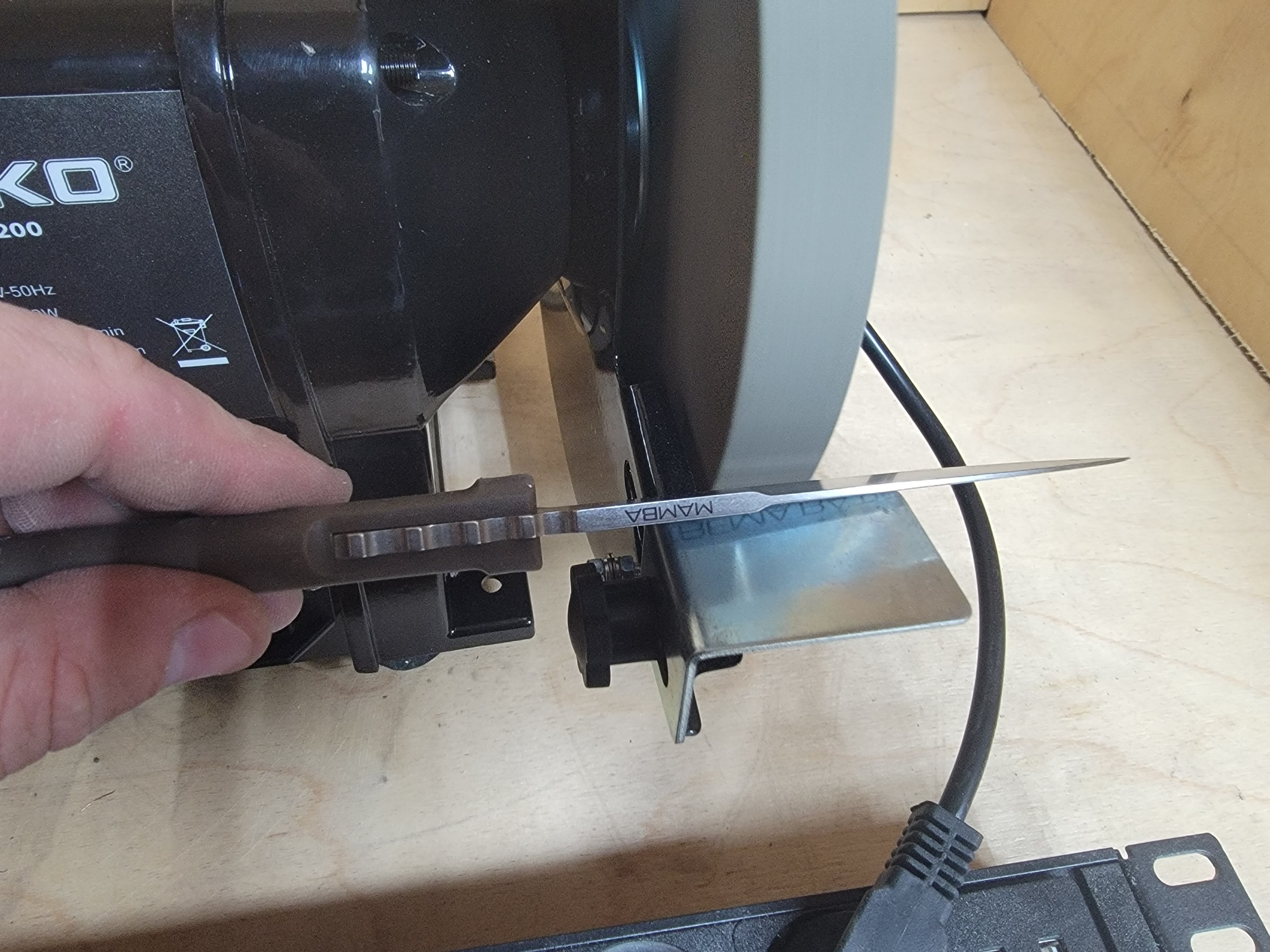 Можно и ножи подтачивать. Рекомендую изначально выставлять необходимый угол. Но для ножей у меня есть «большой брат заточного» — гриндер, а также точилка типа Apex для тонкой доводки.