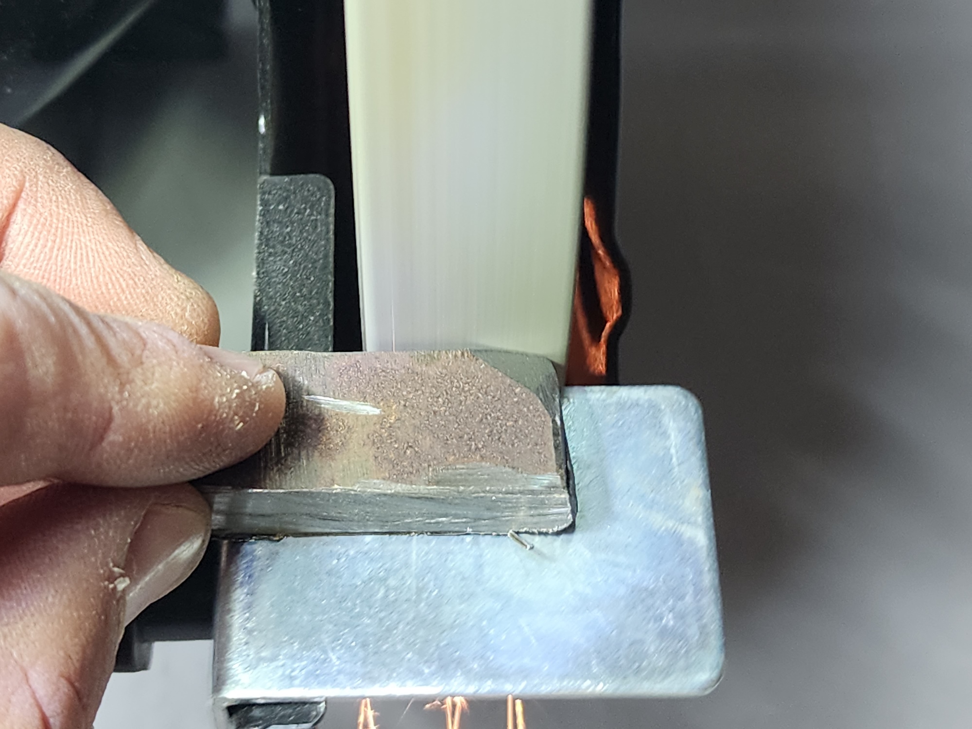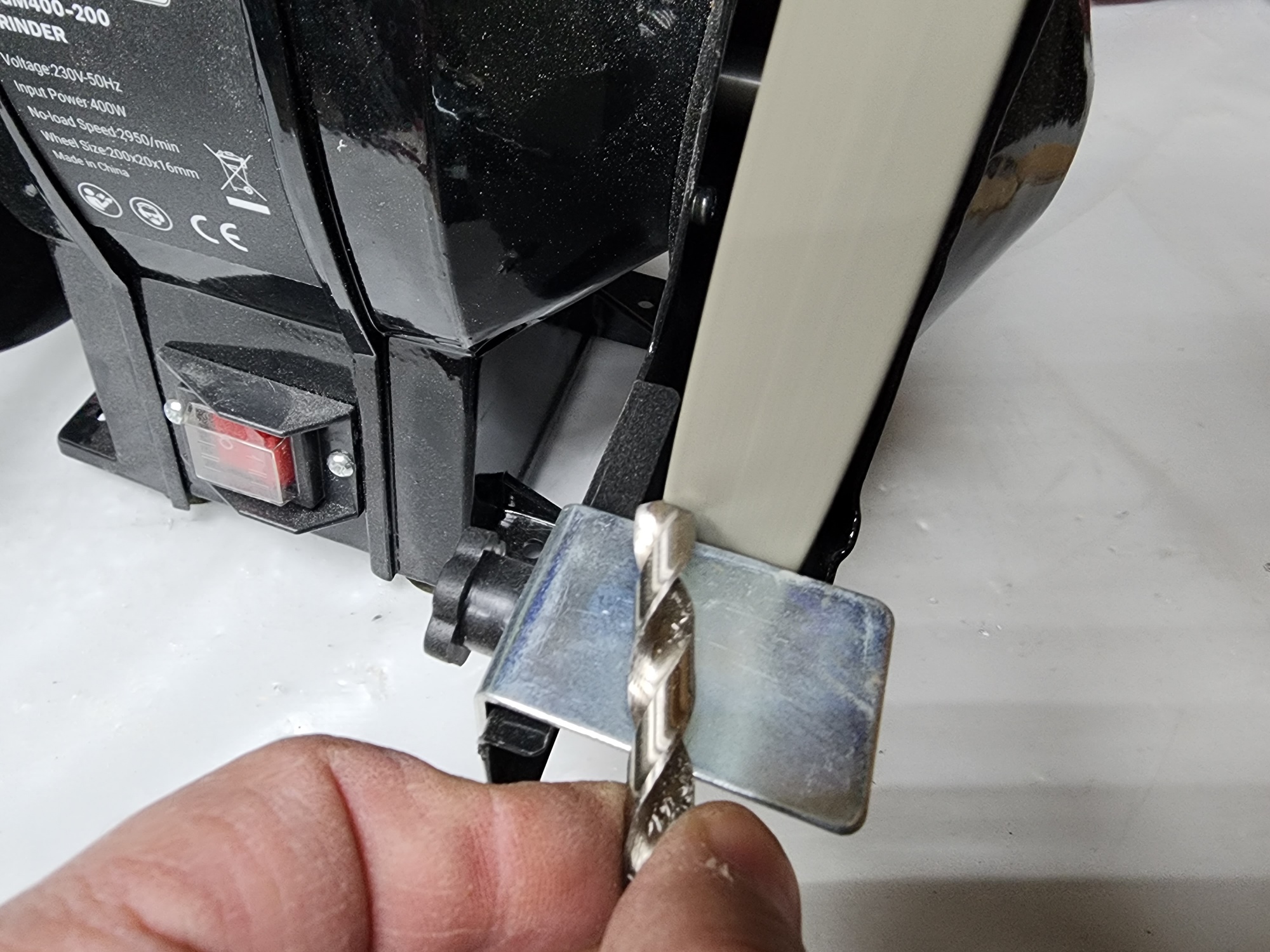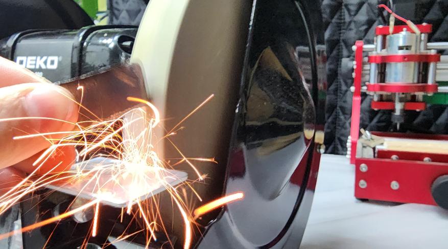 А вот различные сверла и мелкие заготовки — самое то. Довольно удобно снимать фаску с металлических деталей, особенно после резки с помощью УШМ или плазмореза. Тут и пригодятся защитные кожуха и крышки — при обработке металлических заготовок на заточном станке образуется большое количество металлических опилок и искр.