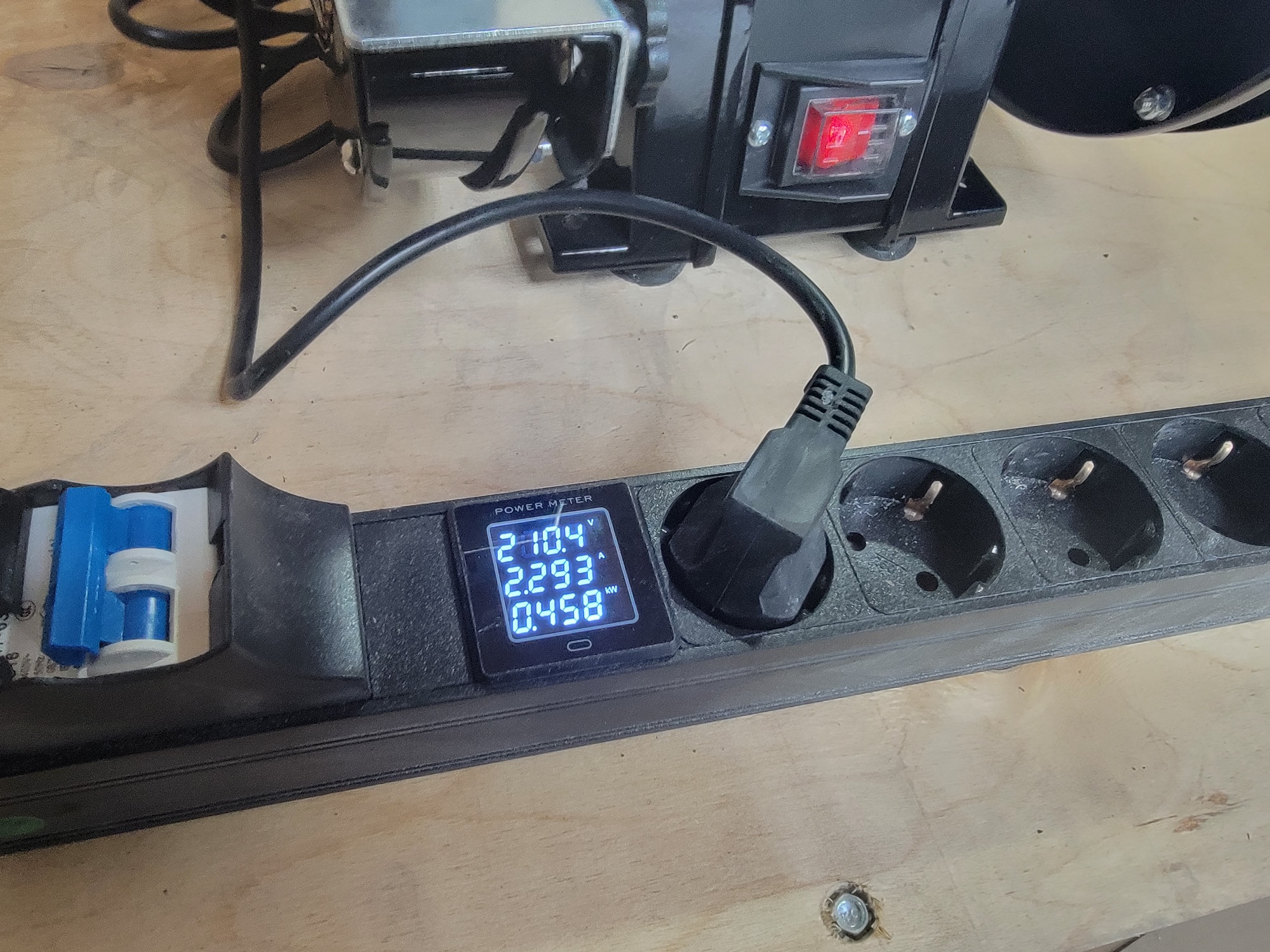 Кнопка включения питания широкая и имеет защиту от пыли. Такой вариант максимально удобен, позволяя как работать, не боясь лишних загрязнений, так и проводить очистку рабочего места после работы. Предусмотрена подсветка кнопки во включенном положении. Вилка питания типа евро, сетевой провод около 1,8 метра.