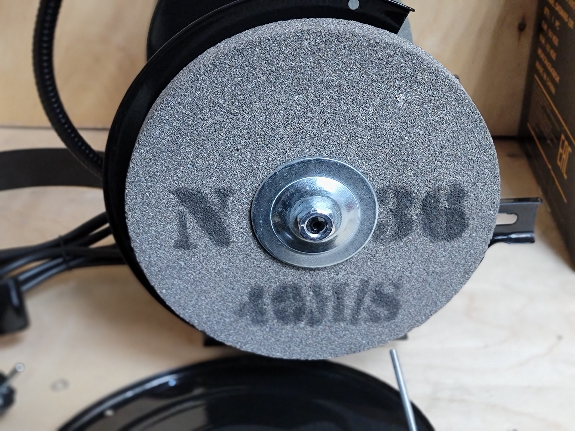 Круги отбалансированы с завода, биения минимальны. Полез снимать круг для проверки посадочного диаметра, потребовалось при установке опять искать положение с минимальными вибрациями. Посадочный диаметр, кстати, 16 мм, то есть можно подобрать любой аналогичный диск (не более по внешнему диаметру 200 мм) с отверстием 16 мм, либо с соответствующими переходными втулками.