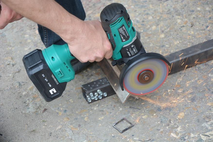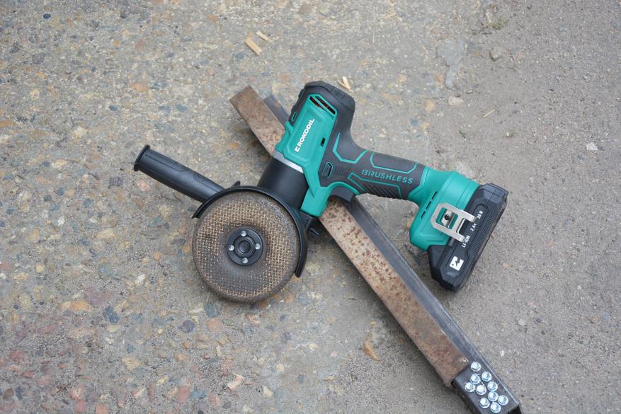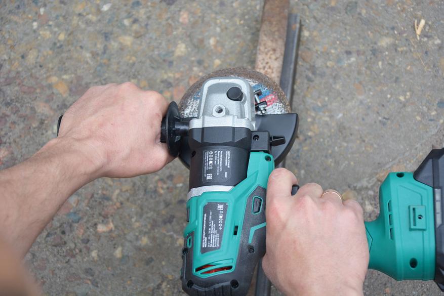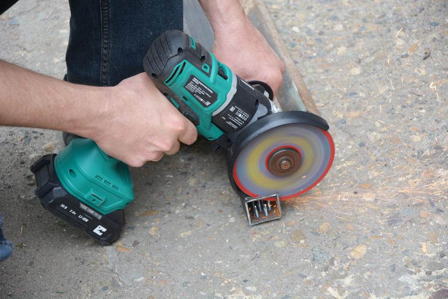 Наибольший скептицизм испытывал перед работой модуля при резке металла. Имел уже дело с аккумуляторной болгаркой и был разочарован — двигатель постоянно отключался, аккумулятор уходил в защиту, и вернуть болгарку к жизни удавалось только, переподключая аккумулятор. Некоторые изменения в схеме подключения двигателя улучшили ситуацию, но не решили проблему полностью. Отсюда и сомнения относительно обозреваемой шлифмашинки.