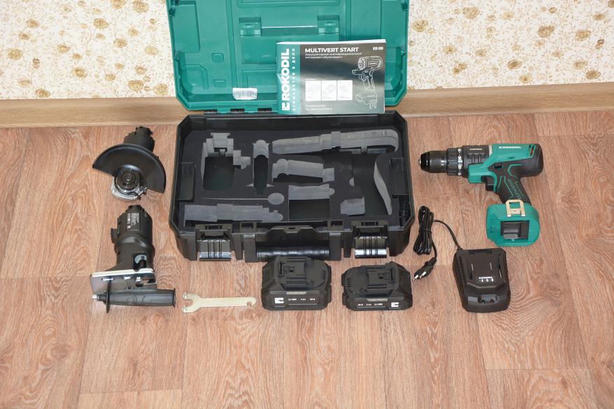 Весь комплект мультиверта аккуратно уложен в пазы органайзера из вспененного материала и не мигрирует по кейсу. То есть модули, аккумуляторы, силовой модуль, имея приличную массу, вряд ли причинят вред друг другу даже при неаккуратном обращении с кейсом. Не буду отнимать время, перечисляя комплектацию, лишь отмечу, что зарядное устройство для аккумуляторов тут более добротное, чем у большинства аккумуляторных инструментов. Кстати, инструкция дает разъяснения на грамотном русском языке.