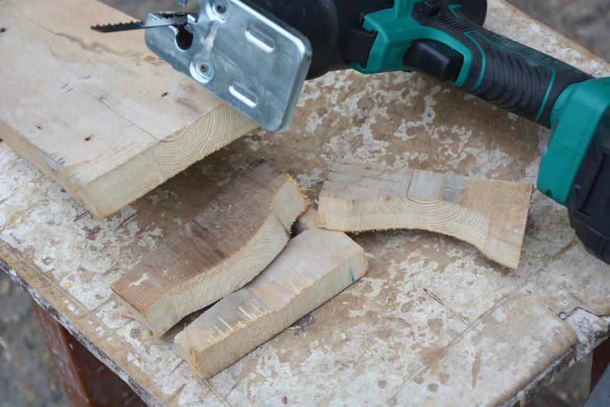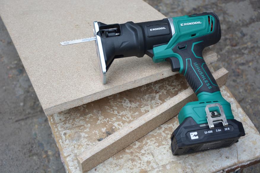 Модуль лобзика прошел испытания на доске и обрезке ДСП. Первоначально смущал непривычный для лобзика хват, но трудностей и неудобств не возникло. При правильно подобранных пилках Rokodil Multivert Start режет материал не хуже обычных электролобзиков, позволяя резать материал не только по прямой линии. Заметил такой момент — в силу того, что двигатель размещен далеко от режущей части, пыли при работе модуля лобзика гораздо меньше.