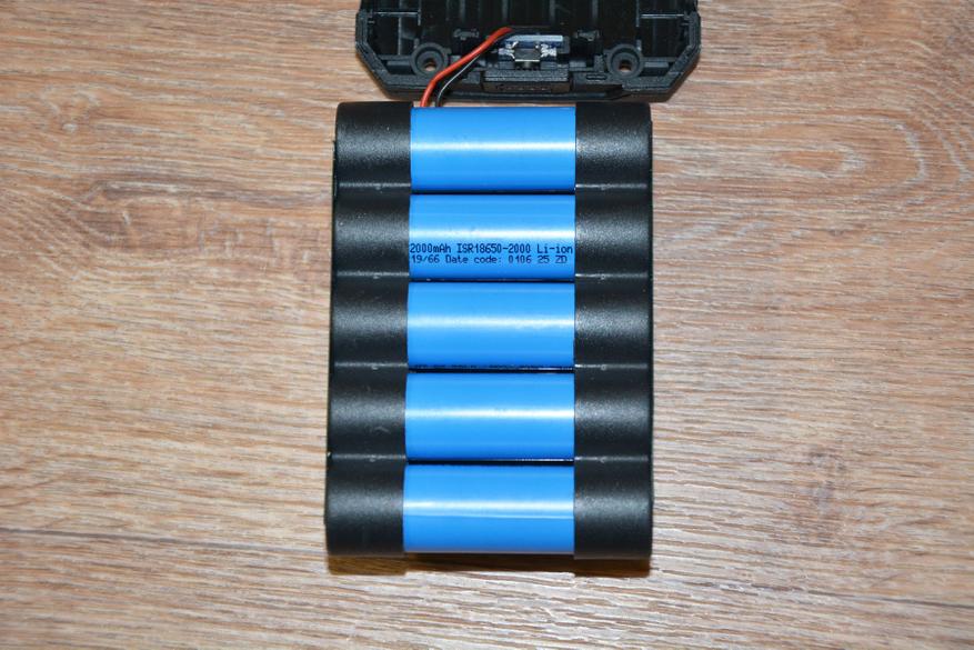 Аккумуляторная батарея емкостью 2А*ч штатным ЗУ заряжается за час, второй (4А*ч) требуется 2 часа, а собраны они из аккумуляторов ISR18650 емкостью 2000 мА*ч.