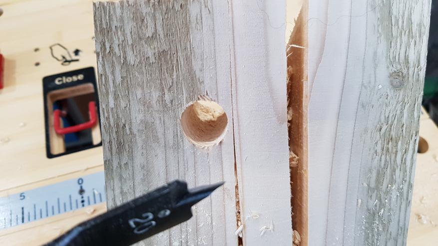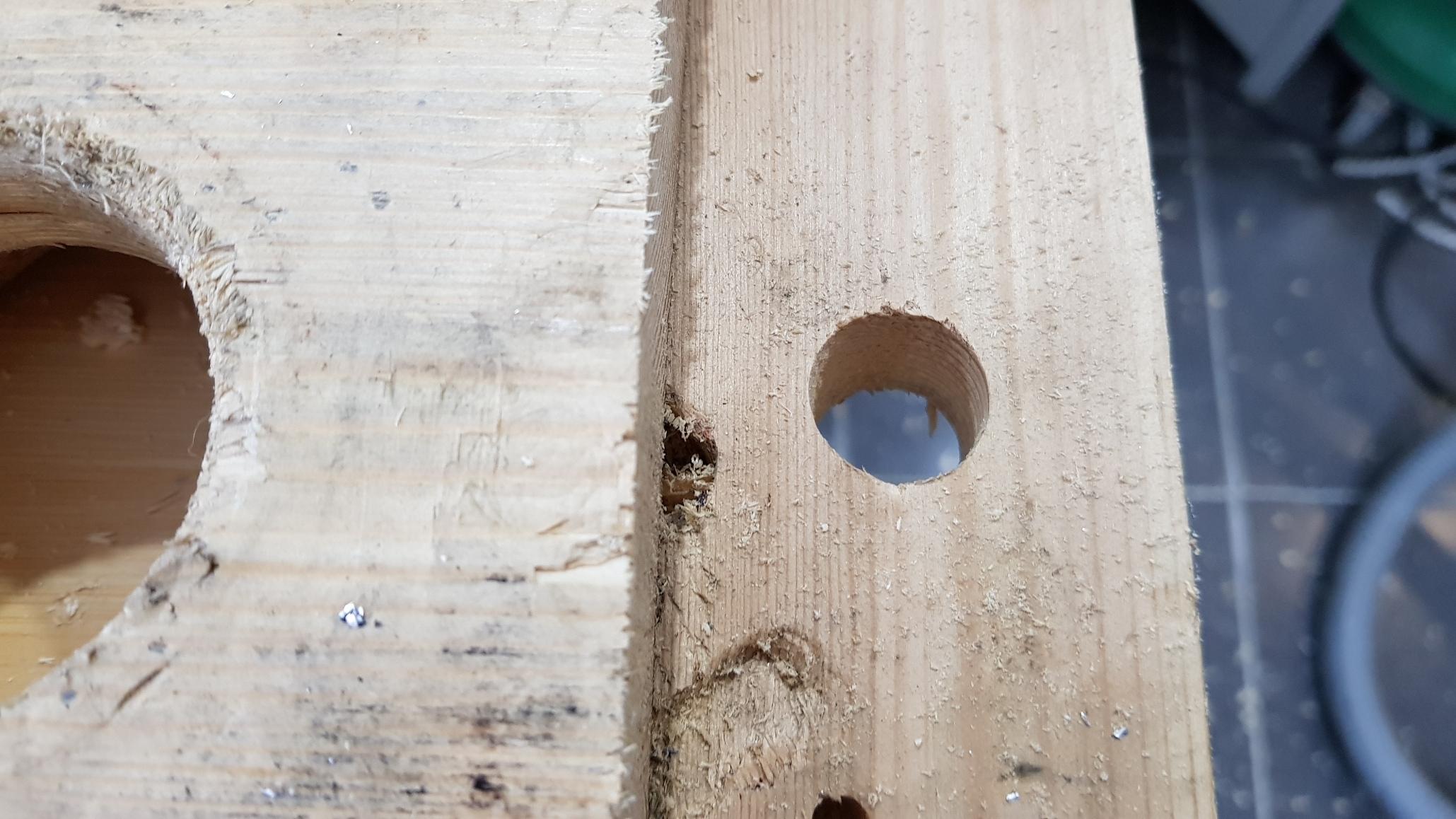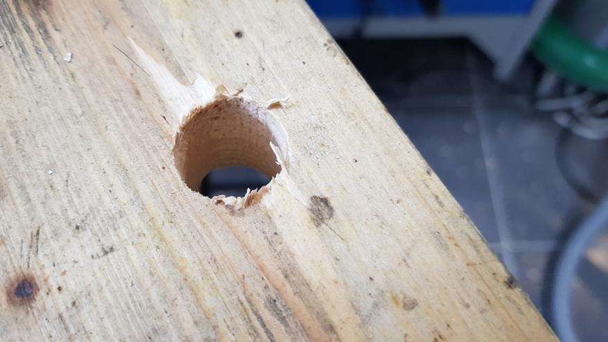 Чистый вход, выход ожидаемо со сколами. На самом деле это специфика любых перьев, но их и использую там, где нет требований к красоте а нужно просто быстро сделать отверстия большого диаметра.