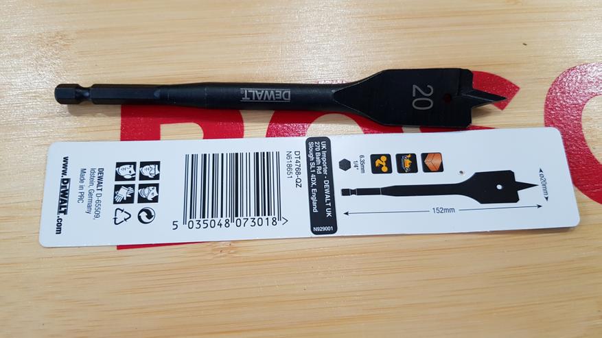 Сверла DeWALT изготовлены посложнее, у них на шее побольше «мяса», шестигранник не бутафорский а действительно под патрон HEX 1/4, с проточкой под шарик. Если судить по звону, это не сырая железяка, а прошедшая термообработку (закалку) в каком-то виде. Утверждается, что можно использовать в ударных винтовертах.