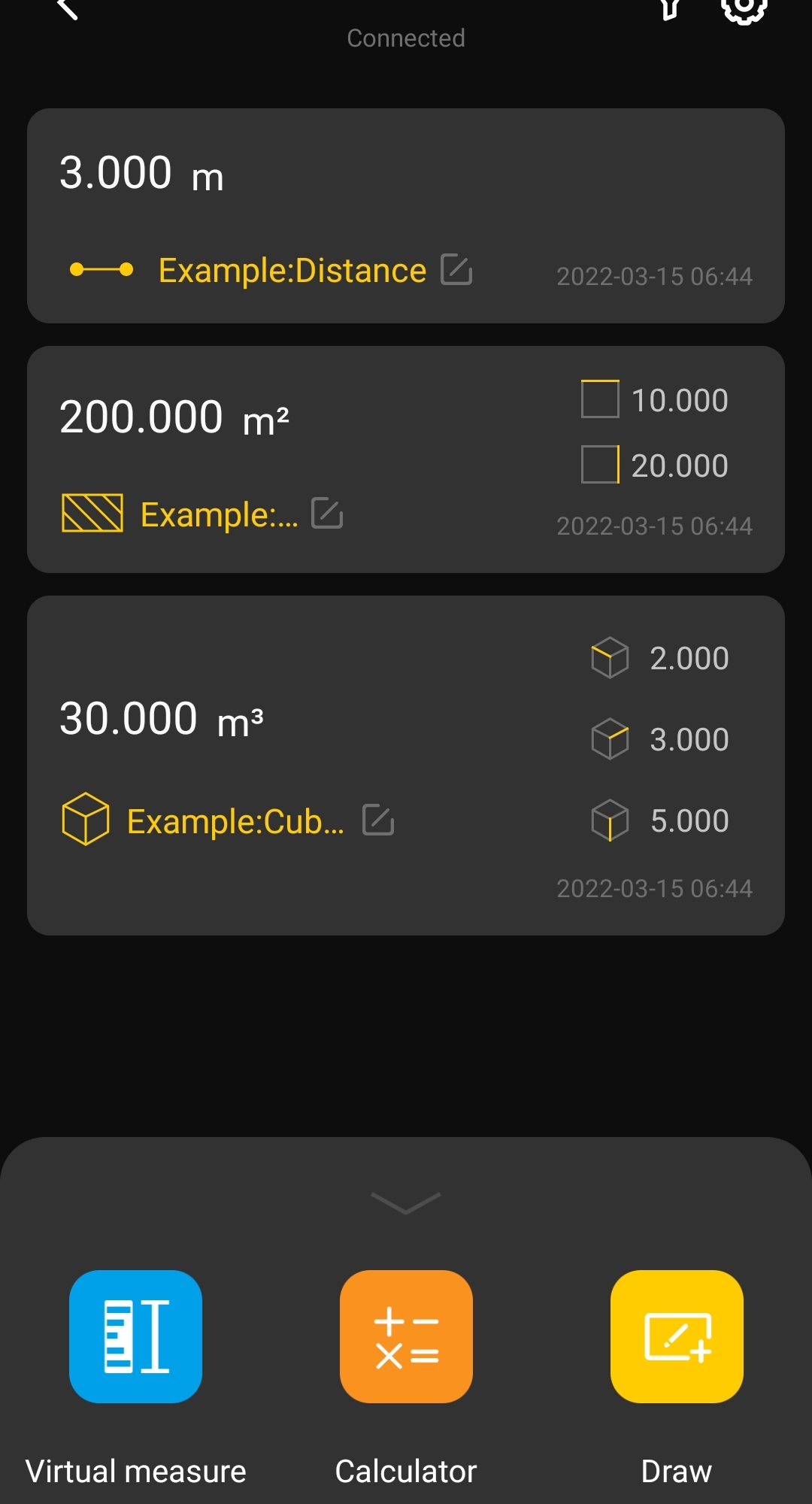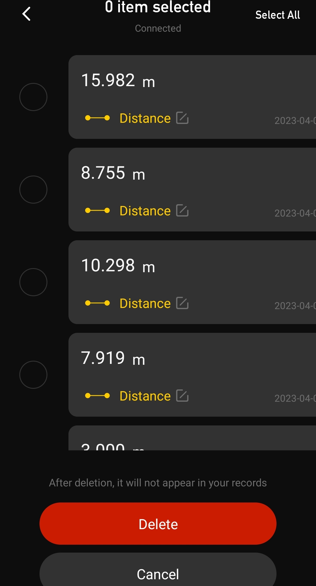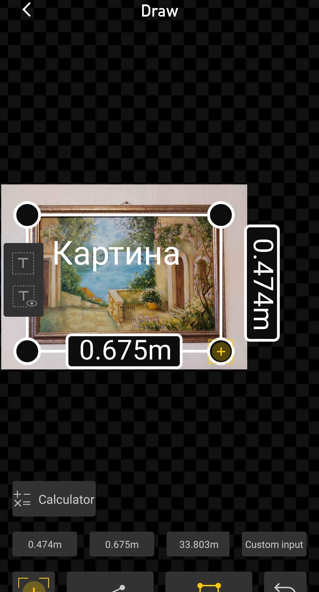 Экран в режиме линейных измерений (по умолчанию) отображает три прошлых измерения и текущее, место отсчета (задний торец или передний), индикатор Bluetooth и заряда аккумулятора. Уровня нет. Экран поворачивается по кругу на 90 градусов, по сигналу датчика положения. Причем делает это без тормозов, это порадовало, но можно и отключить эту возможность. Углы обзора и четкость изображения хорошие.