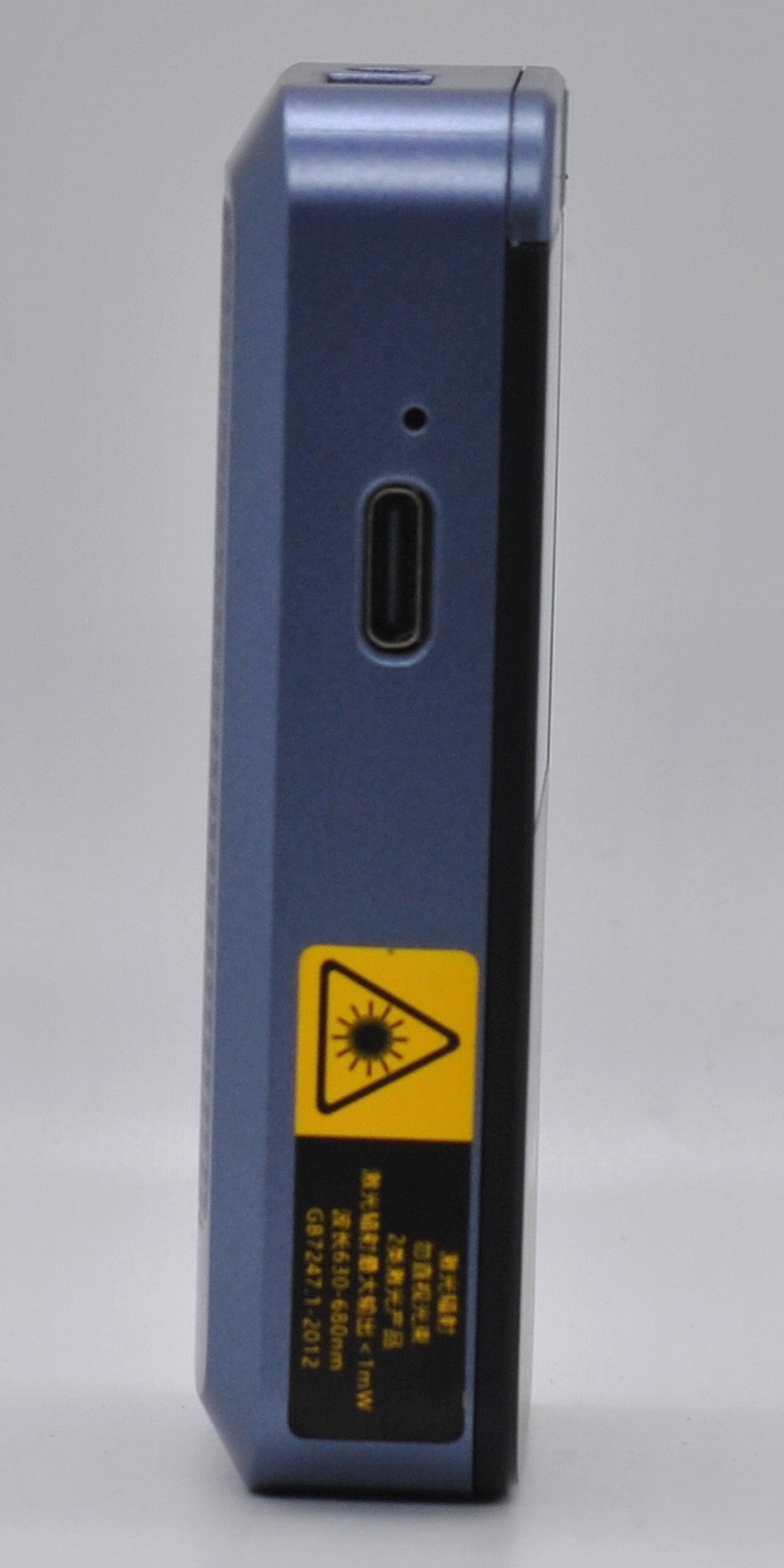Тут все стандартно: сверху излучатель и приемник лазерного луча, снизу микрокнопка сброса. На нижней грани дальномер стоит устойчиво.