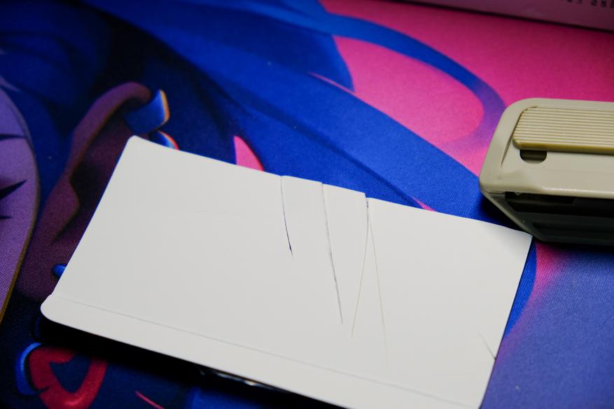 Кстати можно резать не только углы, но и ровные поверхности картона. Нужно просто наклонить резак вперед (для этого спереди есть небольшой вырез)