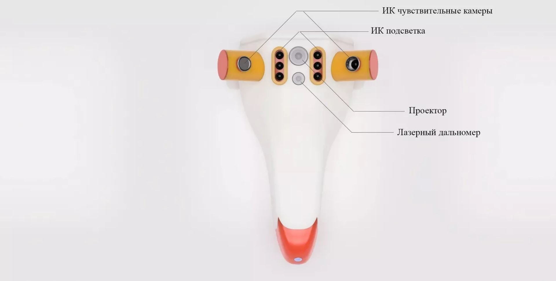 Прибор с помощью двух ИК камер и подсветки сканирует кожу, обнаруживает вены, просчитывает оптимальные точки пункции(этой функции нет в других аппаратах), после чего в реальном времени проецирует обработанное изображение на поверхность