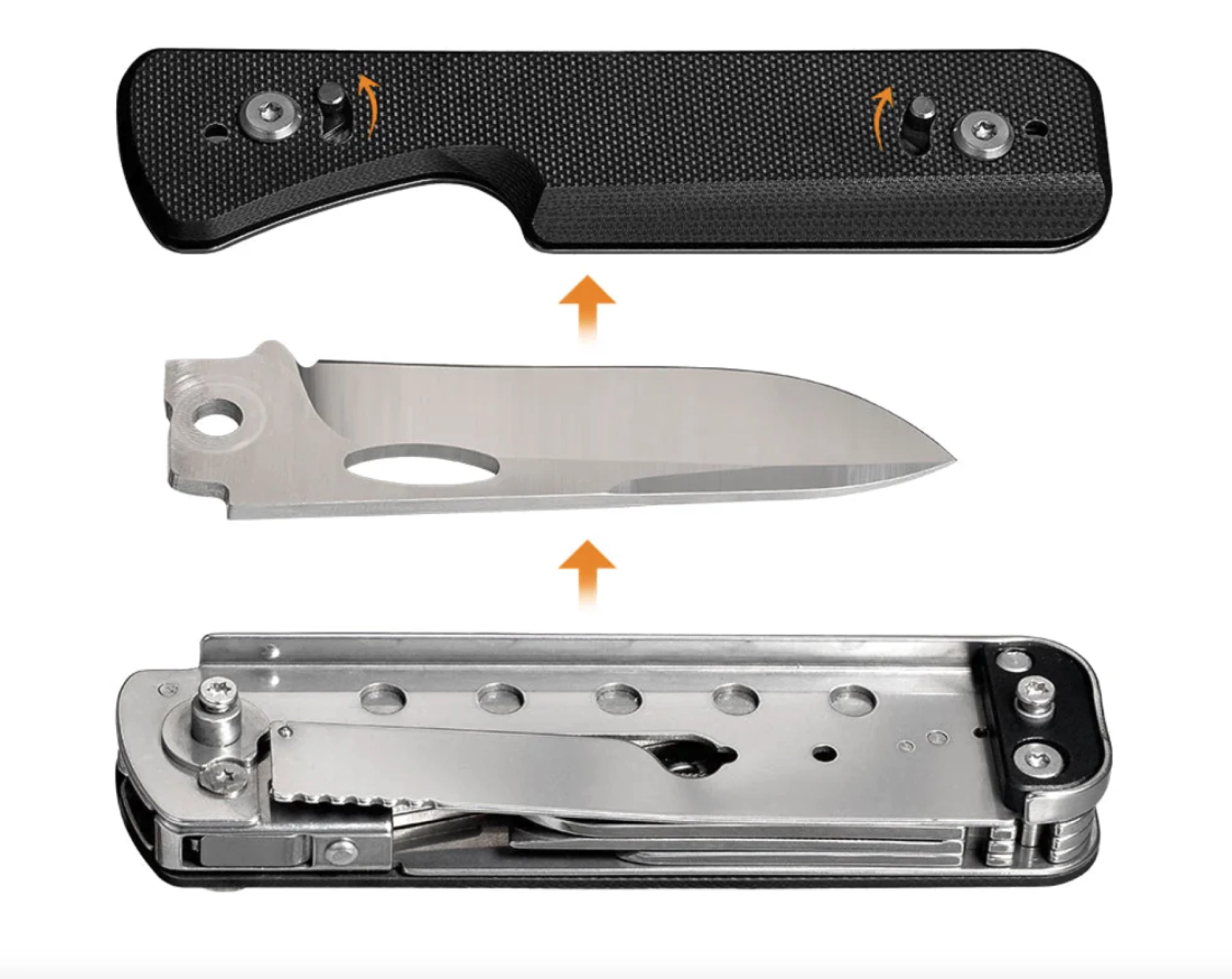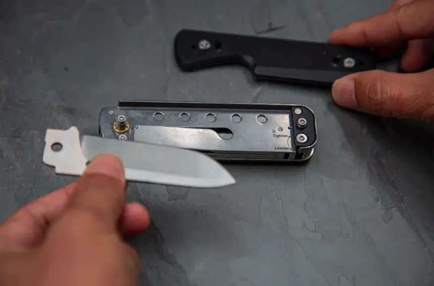 Система Phantom отличается от Flex особой конструкцией крепления лезвий через закрытое отверстие, скользящее по выступу внутри корпуса. Для замены лезвия необходимо открыть два замка-защелки и снять панель с рукоятки. Пользователи могут дополнительно приобрести более десяти вариантов лезвий, в том числе американский танто, «баранью ногу», зубчатые и пильные полотна, а также специальные насадки.