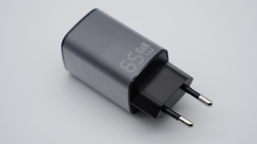 Как я уже у поминал ранее, в моем случае расширенный комплект поставки, в который вошло весьма качественное зарядное устройство на 65 Вт. В нем предусмотрена возможность подключения к порту USB Type-C и USB Type-A.