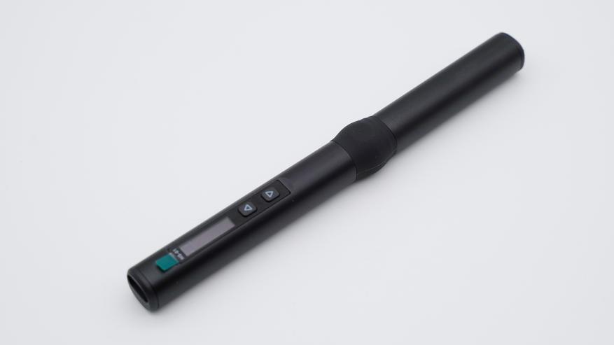 Управление паяльником осуществляется при помощи двух механических кнопок. Реализовано это удобно, более того, предусмотрена возможность перенастройки управления как под правую, так и под левую руку. Возле кнопок расположен весьма информативный экран, размеры которого составляют размеры 22х6 мм.