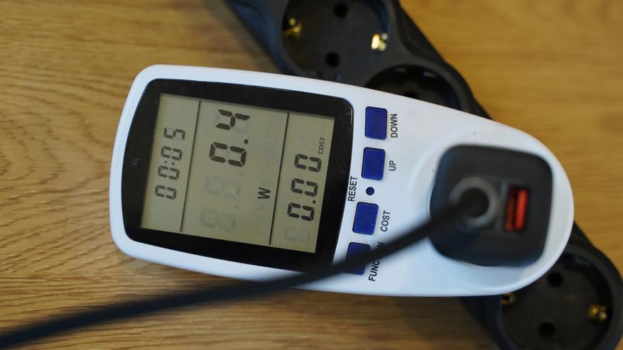 В ходе тестирования паяльника мне было любопытно узнать, какую мощность он потребляет. В общем, при работе ваттметр показывал показатели примерно до 40 Вт, а в момент, когда паяльник нагрелся и находится в режиме ожидания показатель колебался на уровне 0.4 Вт.