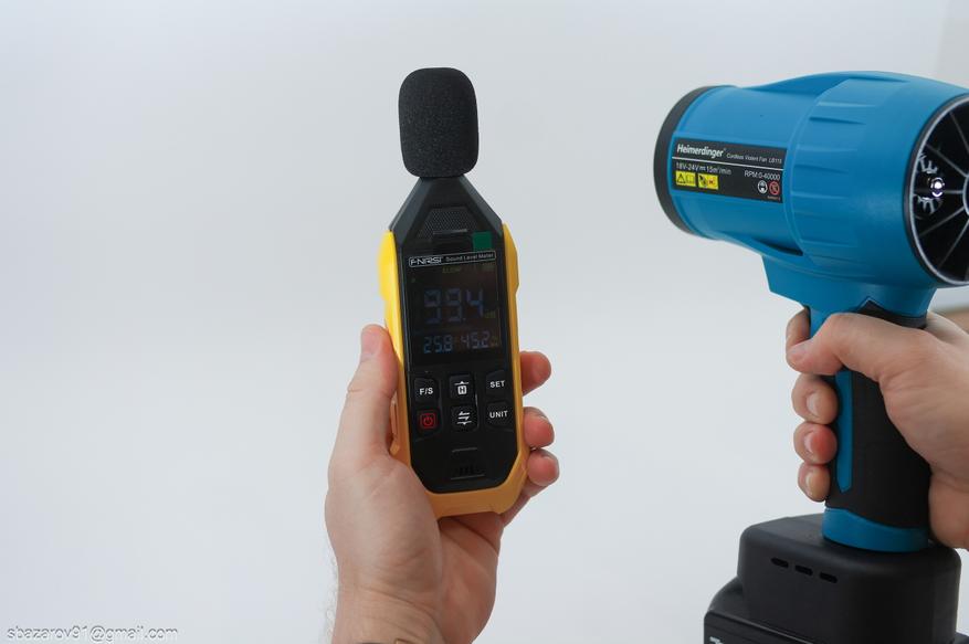 Собираем обратно и переходим к тестам. Сначала стоит отметить высокий уровень шума. Heimerdinger LB115 раскручивается как небольшая турбина, создавая сильный гул. На расстоянии вытянутой руки уровень громкости достигает практически 100 дБ. На низких и средних оборотах шум можно назвать комфортным, но на максимальных он становится дискомфортным. Для длительной работы лучше использовать беруши из комплекта — они точно не будут лишними.