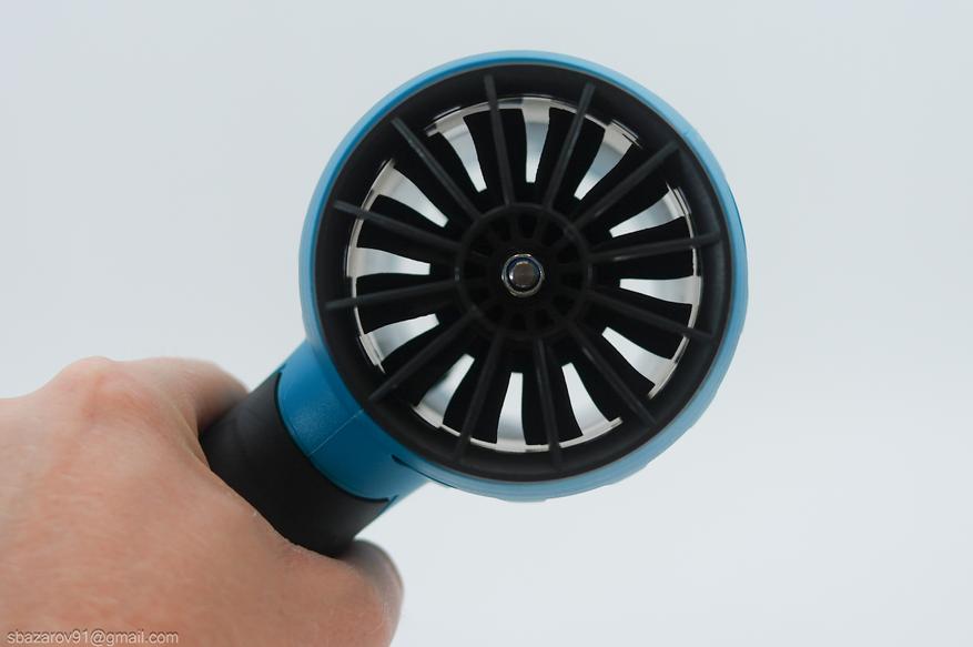 Конструкция фена проста, хотя электродвигатель вызывает вопросы из-за внешнего сходства с коллекторными моделями (хотя характерного пуска и щеток не наблюдается). Нельзя не отметить мощный воздушный поток, который буквально вырывает инструмент из рук и создает сильный гул на максимальных оборотах. Для розжига угля и продувки системного корпуса — мастхэв, остальное под вопросом.