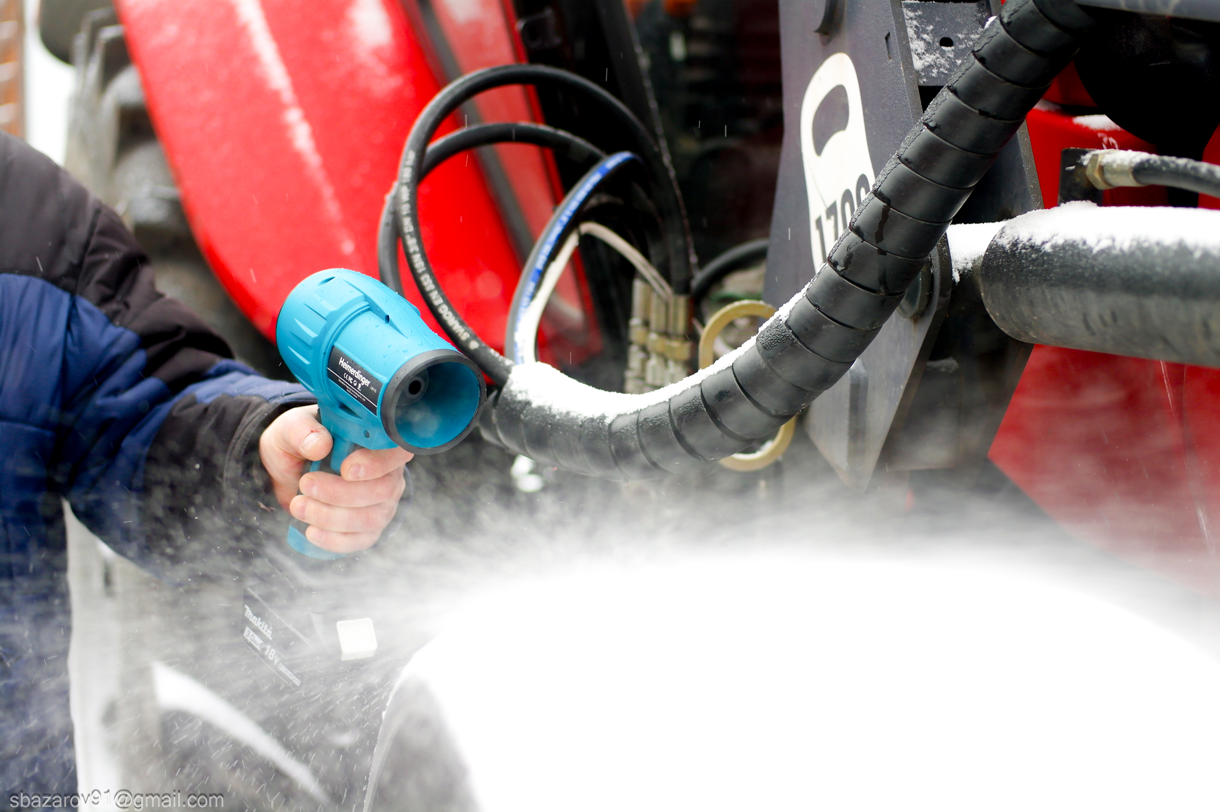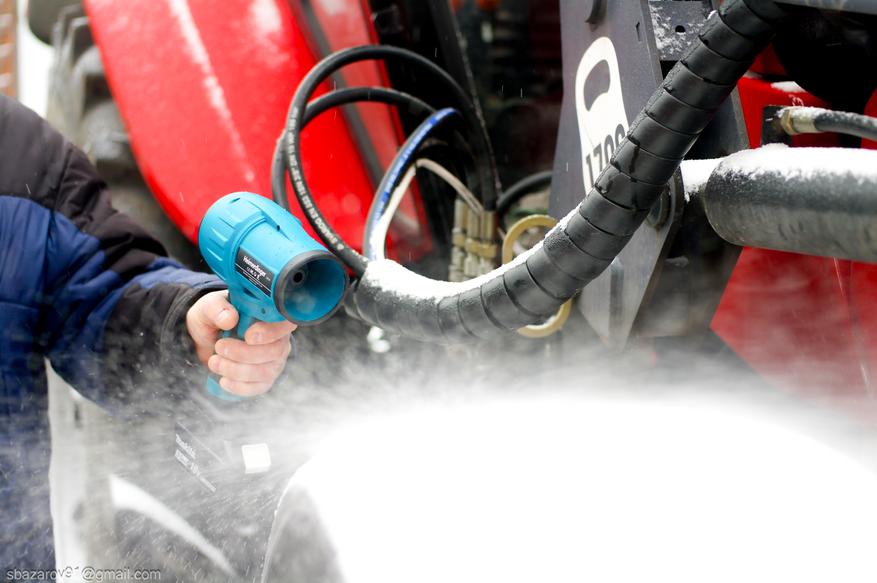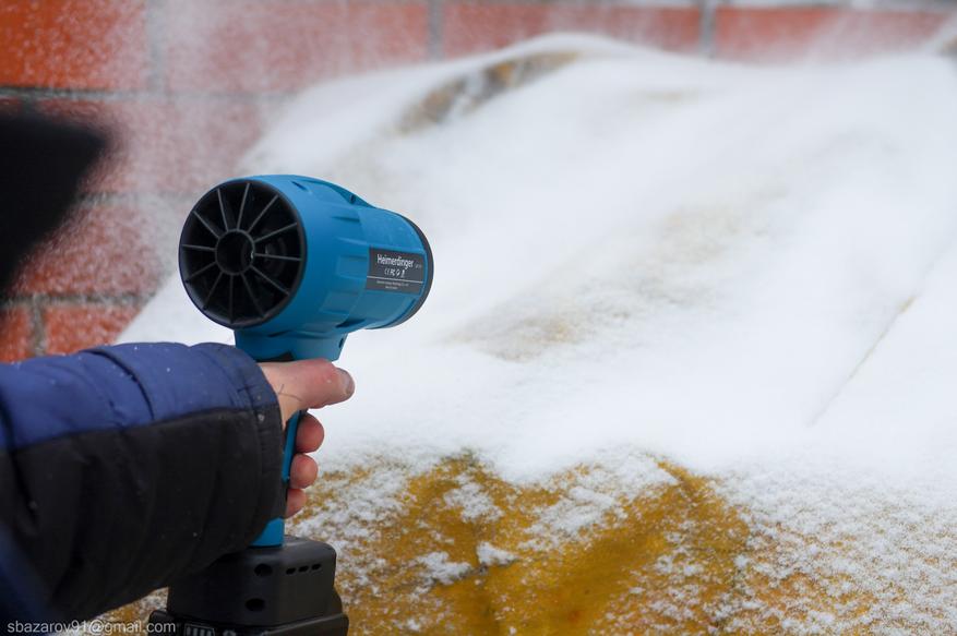Очистка автомобиля от свежего снега: фен легко справляется с легким снежным покровом;